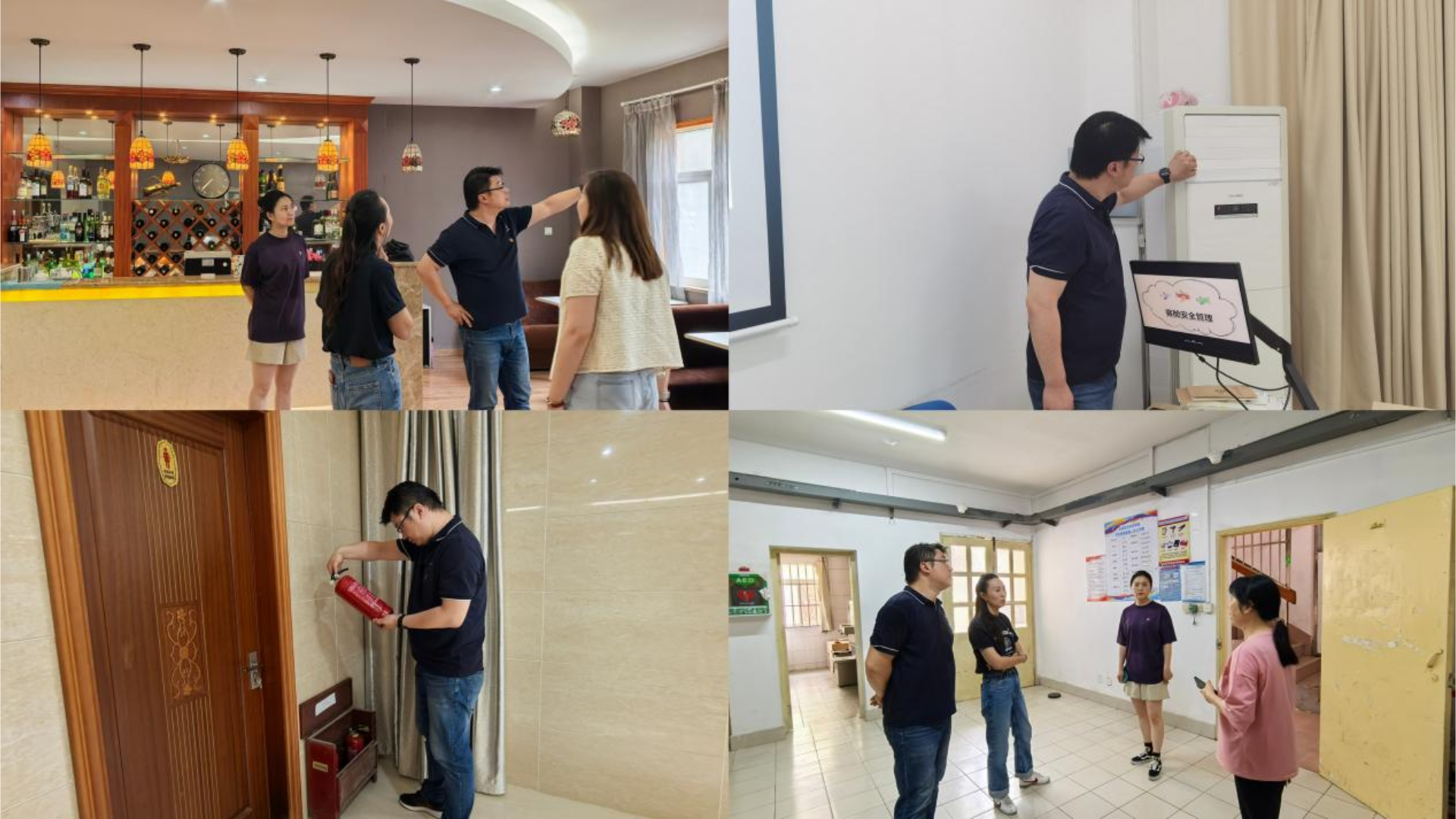 讲座结束后,民用航空系吴慧主任与党支部书记查理、辅导员老师巡查系里消防设备、实验室及宿舍安全状况。