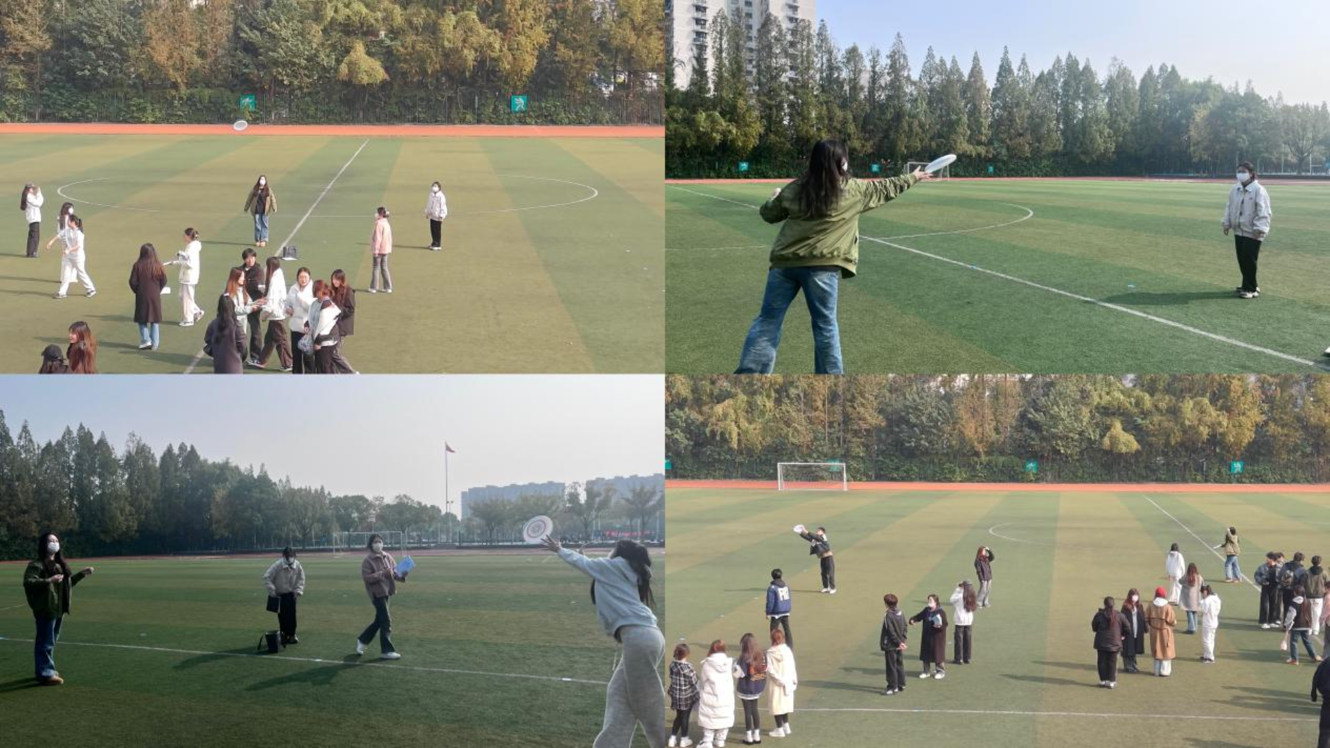 活动前,老师为同学们讲解了飞盘的基本知识、持盘方式并演示抛接的要领。接着同学们分组扔盘、接盘,培养飞盘的手感并通过重复练习不断提高团队合作的默契。同时,老师适时、耐心地指导和纠正,让大家的动作更加规范。
