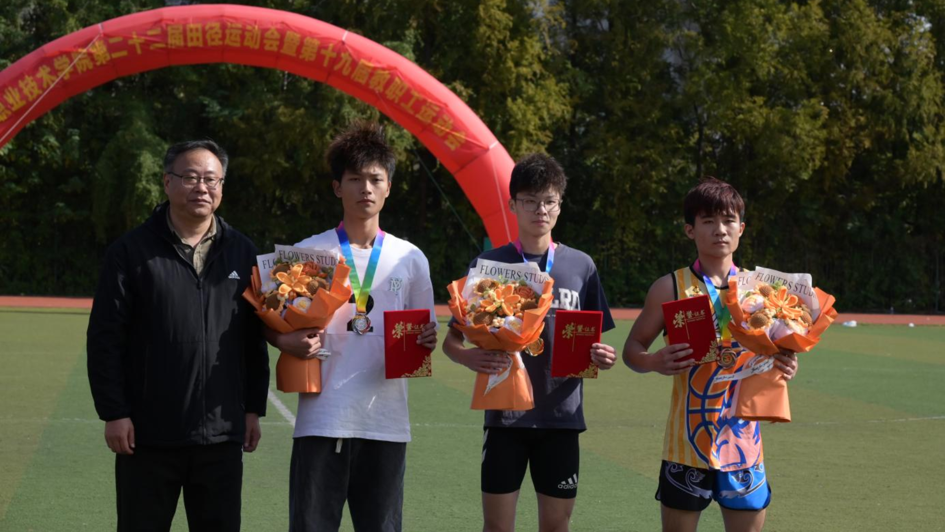 闭幕式上,学院领导对在运动会中表现突出的团体和个人进行了表彰和奖励。计禹帆同学作为破纪录的英雄,被授予了特别荣誉证书和奖牌,他的努力与付出得到了应有的回报。