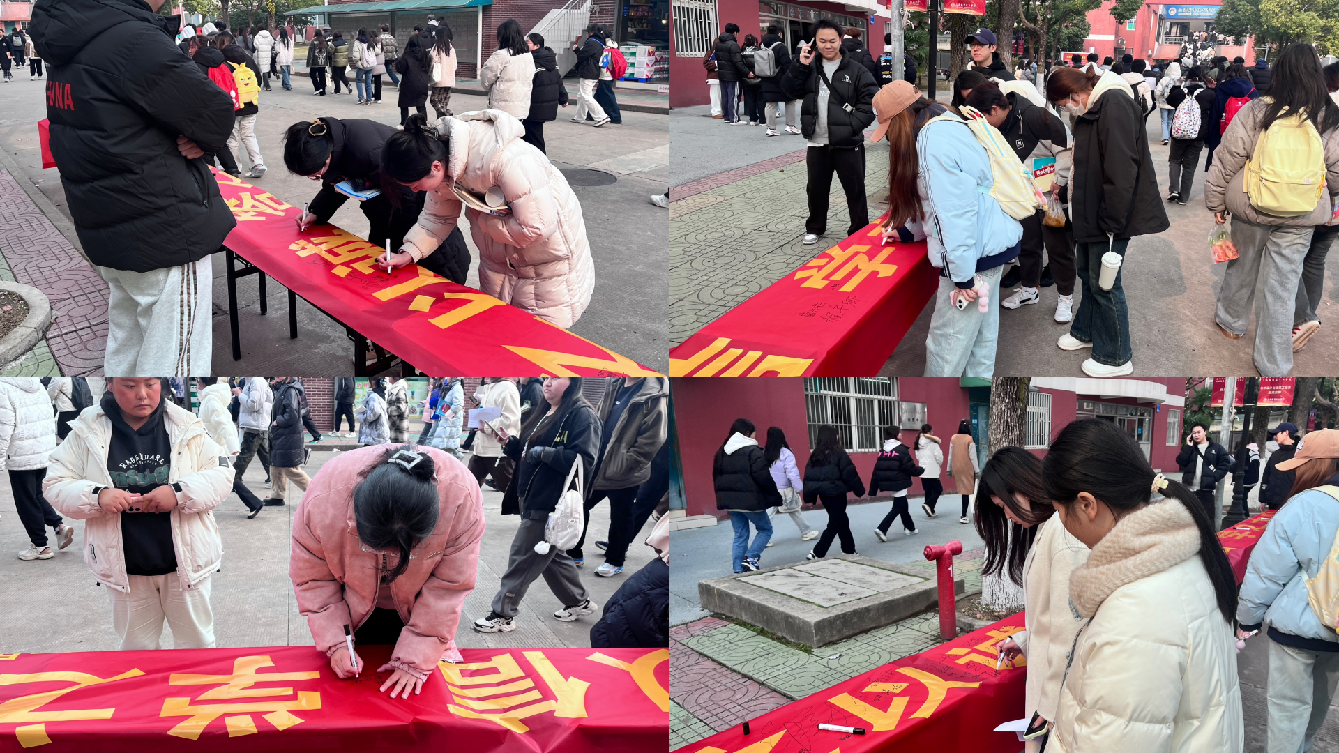 组织诚信考试签名活动,学生郑重签下名字,许下庄重承诺;还自发举办主题班会,分享复习经验,互助答疑,携手以真才实学迎考。