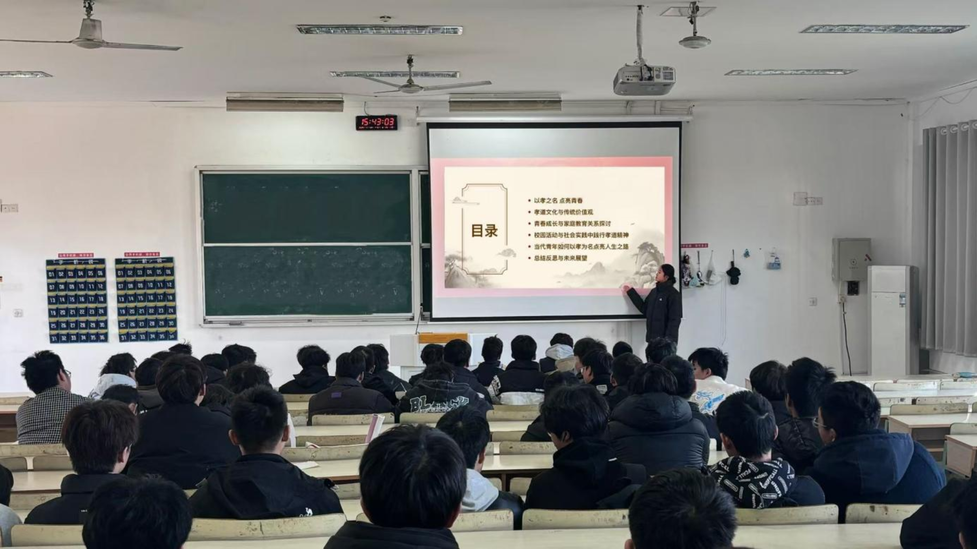 为弘扬中华传统孝道,培育学生感恩之心,91自拍 民用航空系于12月17日在1303教室举办“以孝之名,点亮青春”主题班会,本次感恩主题班会由吴程彦同学主讲,旨在引导学生在青春时光领悟孝道真谛,让感恩成为成长底色。2024级全体学生参加了此次活动。