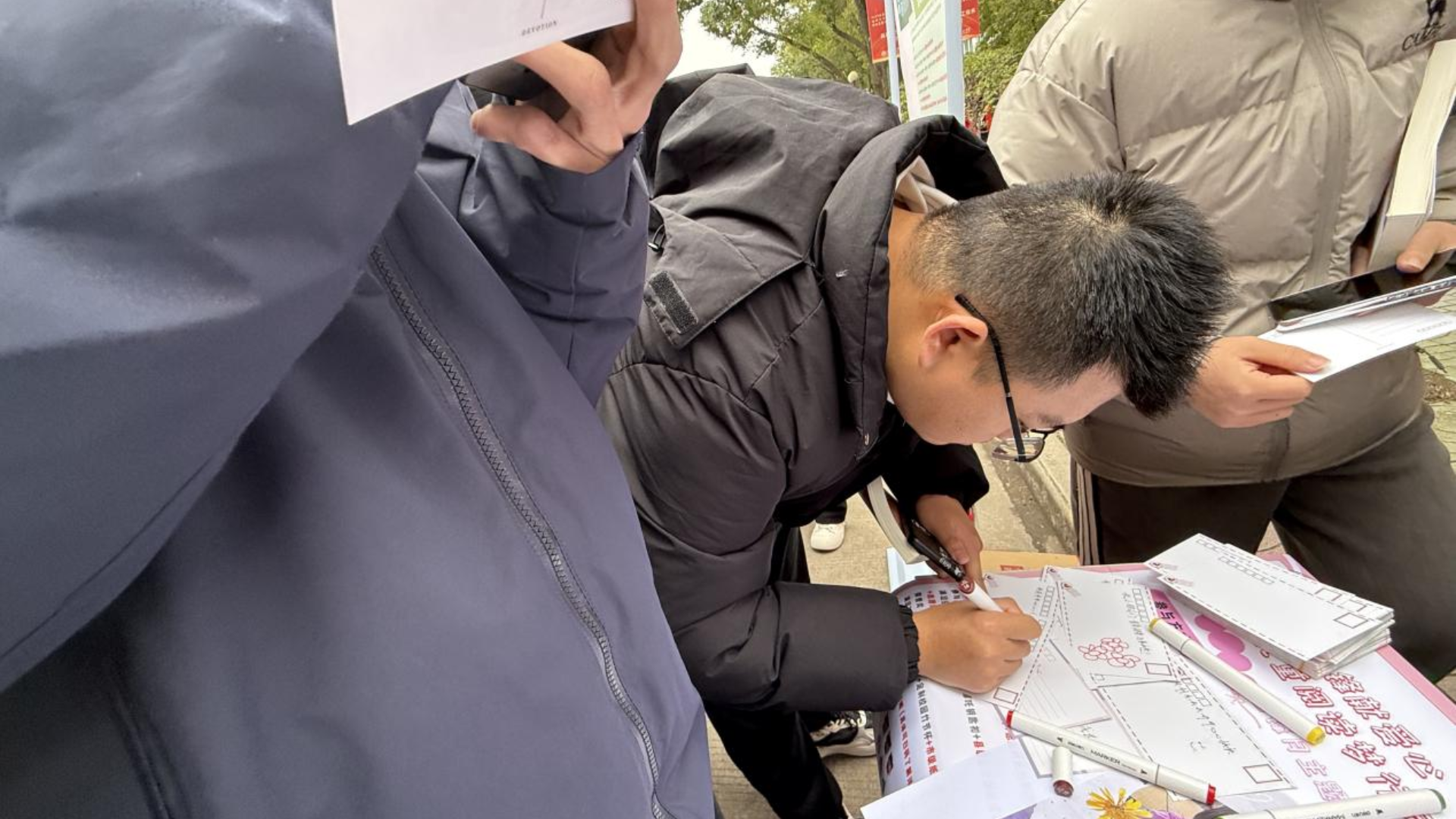 随后,同学们来到夫子庙东水关社区。活动现场设置多个特色展区,我系志愿者协助社区医护团队为居民免费量血压、提供健康咨询,免费磨刀等暖心项目。我系志愿者充分发挥创意,带领居民制作扭扭棒郁金香手工艺品,传递春日温暖。