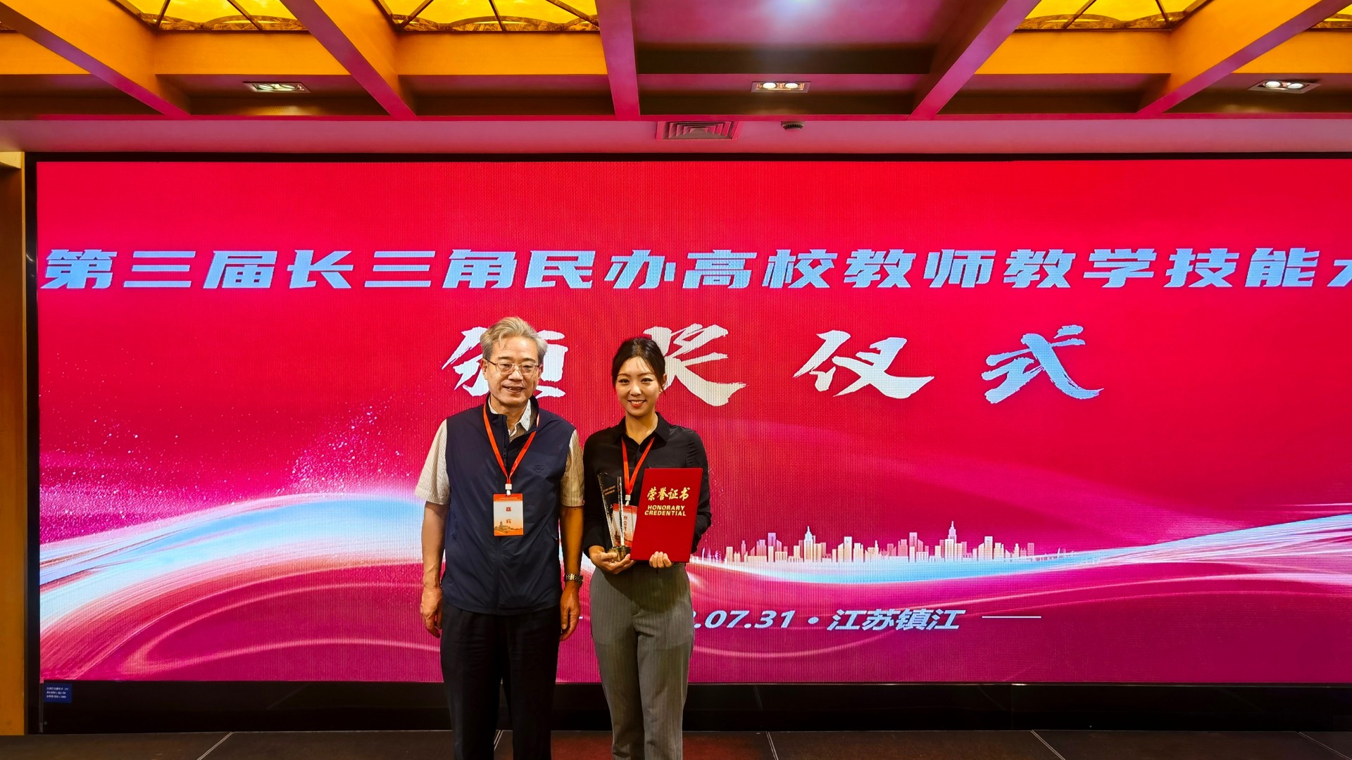7月31日,长三角民办教育协作发展年会暨第三届民办高校教师教学技能大赛评委会会议在镇江召开,我系朱枫老师获得第三届长三角民办高校教师教学技能大赛二等奖并作为获奖代表参加颁奖仪式。