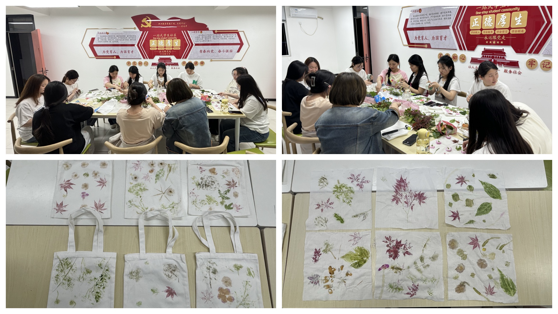 仲春之际,绿意葱茏,生命蓬勃生长,传承之志,文化为基。为深入践行文化传承创新,培养大家的创造力与审美能力,促进同学们身心发展。4月17日晚上6点基础教育系在南三一站式社区开展“拓花草之印 染自然之美”植物拓染非遗手作活动,于一方布帛之上,拓印出传统文化的绚丽篇章。