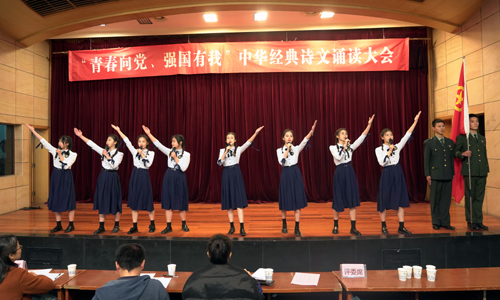 本次中华经典诗文诵读大会于11月初启动,全院各系各专业共有220多人报名。经过11月17日和18日分两场初赛,评审组老师们本着严谨公正的态度,从各系51个参赛节目中遴选出20个节目进入决赛。公共教学部大学语文组的老师们在教学任务繁重的情况下,加班加点为选手们进行辅导。