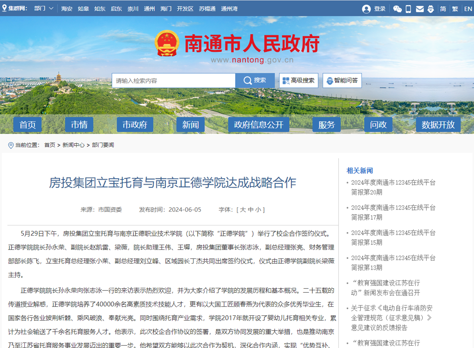 【南通政府】房投集团立宝托育与南京正德学院达成战略合作