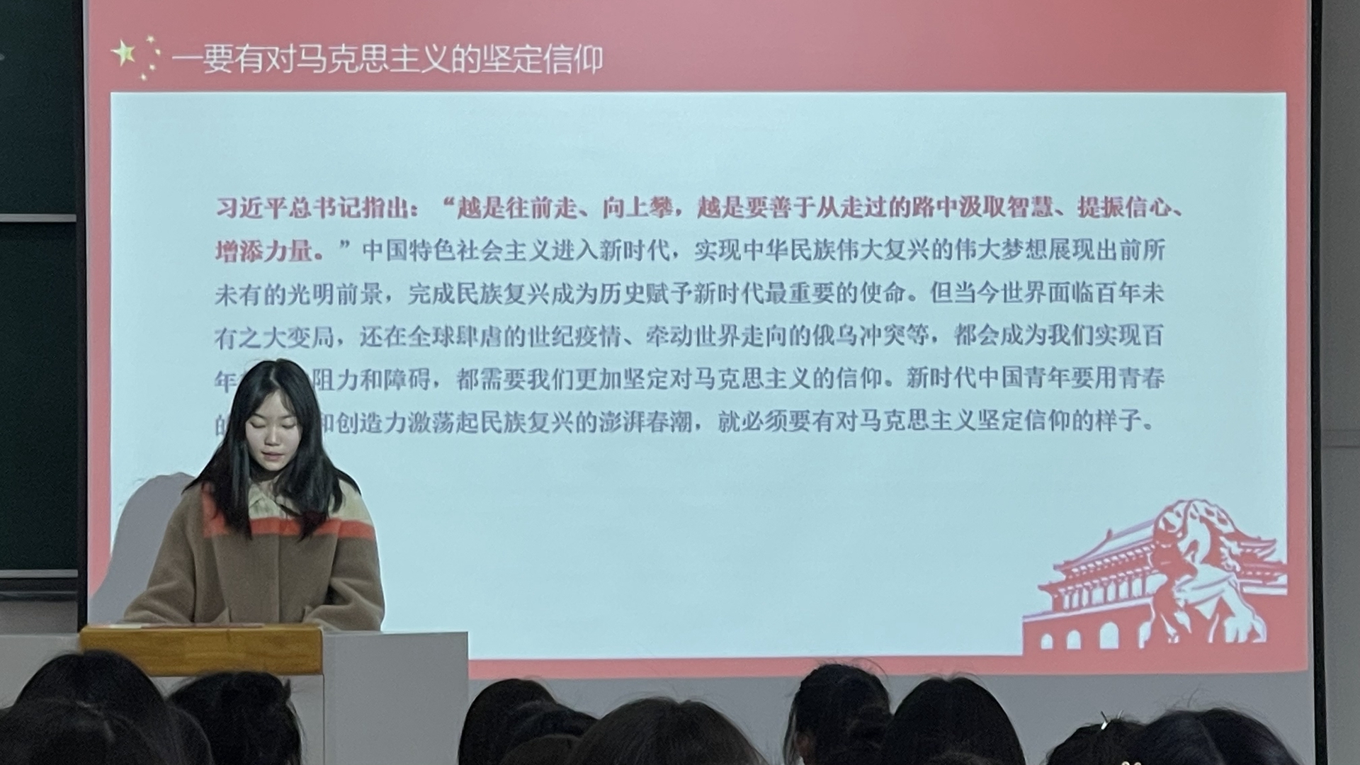为深入学习宣传贯彻党的二十大精神和习近平新时代中国特色社会主义思想,落实立德树人根本任务,引导广大青年学生坚定信念“听党话、跟党走”。基础教育系团总支结合院团委《关于实施高校“信仰公开课”计划的通知,于在2月16日下午在1203教室举行了以“新时代中国青年要有的样子”为主题的新思想信仰公开课。此次“信仰公开课”由院二十大精神宣讲团成员厉宇宁主讲。