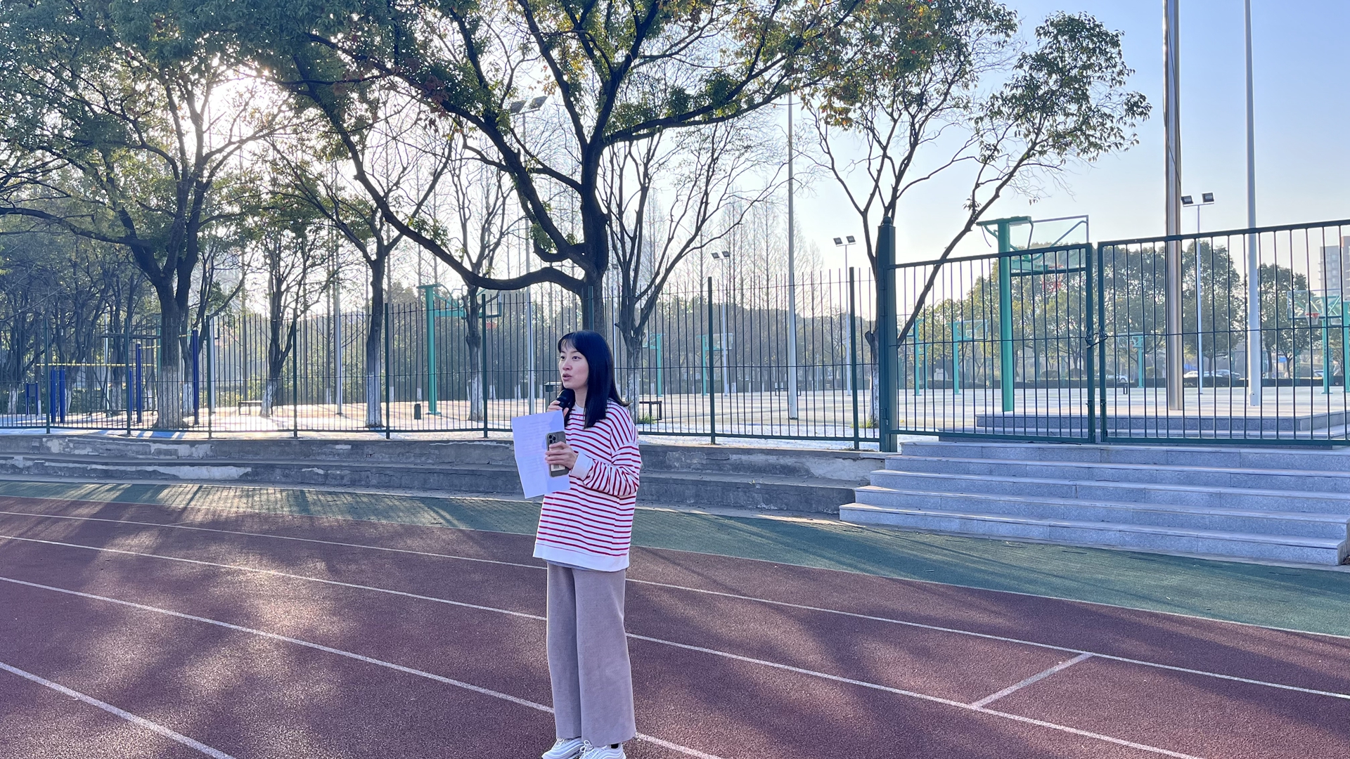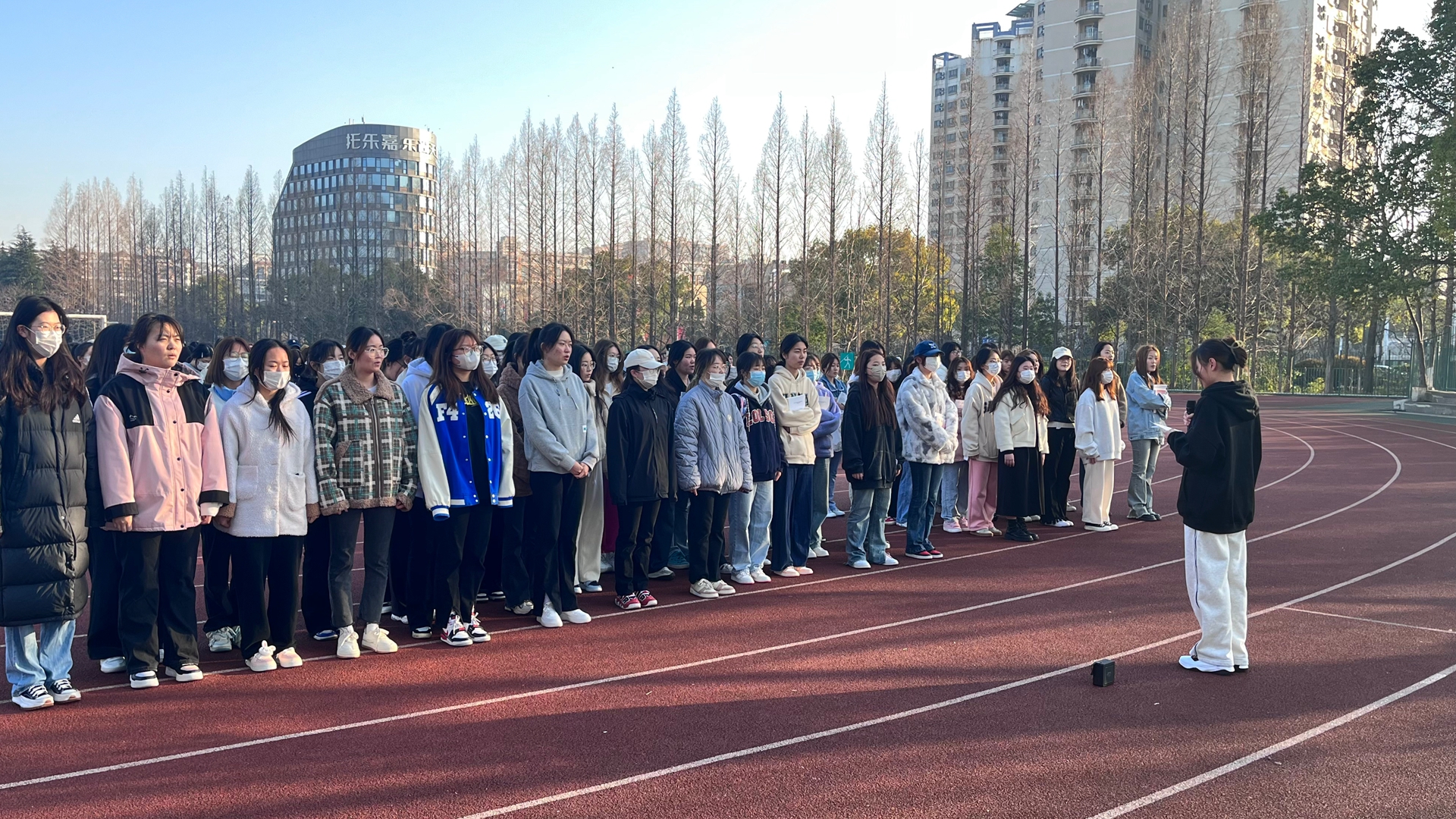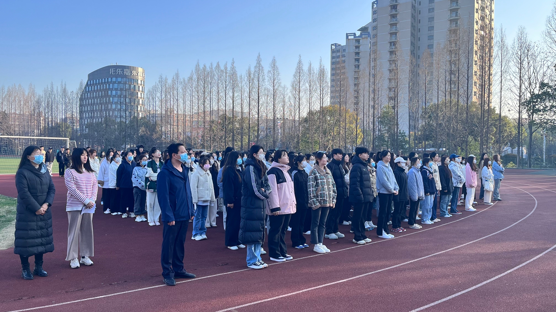 3月13日,我系师生齐聚田径场。迎着初升的朝阳,升国旗仪式正式开始,国旗仪仗队的同学们迈着整齐划一的步伐,护送着鲜艳的五星红旗正步走向旗台。随着庄严的国歌声奏起,全场肃立,全体师生目送五星红旗冉冉升起,一同高唱国歌,鲜艳的五星红旗迎风飘扬,在阳光下熠熠生辉。