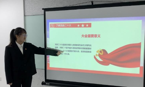 随后,高新茹向团员代表阐述了党的二十大召开的重要意义,并且在最后开展了“你来提问我来答”的环节,团员们都踊跃发言,积极参与,使得课堂气氛格外活跃。
