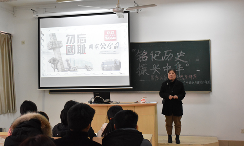 以国家之名,为世界敲响和平钟;以正义之光,为受难者点亮回家路。艺术设计与建筑工程系谢岚主任于2021年12月14日中午在八号楼8303举办“国家公祭日”讲座。谢岚主任的导师学生及21届艺建系各班班委共同参与了本次讲座,缅怀先烈。