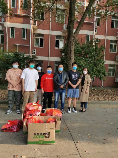 由于两位老师暂不能进校,系学管副主任陈宏波和周倩老师亲手将爱心礼包转发给学生, “疫情宅校,同学们一定要注重自我防护,元气满满!”陈主任和周老师还不忘叮嘱几句,学会调整情绪,即便宅在校园,也要执阳光之心,绽别样青春。