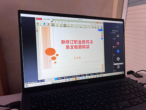 艺建系系主任谢岚同志从“根本保证、基本定位、基本目标、管理体制、举办机制、实施原则、培养要求、保障机制”八个层面,梳理了新《职业教育法》的主要内容和制度创新。