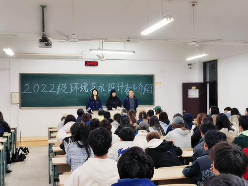 2022年10月6日下午,艺建系环艺专业224301、224302、224303三个班的同学在9305开展了新生专业介绍,在辅导员廖晶晶老师的组织下,钱抒老师和马亮老师作为专业教师同时也作为班主任,分别做了专业介绍及大学生活及同学们未来专业规划的展望和愿景。