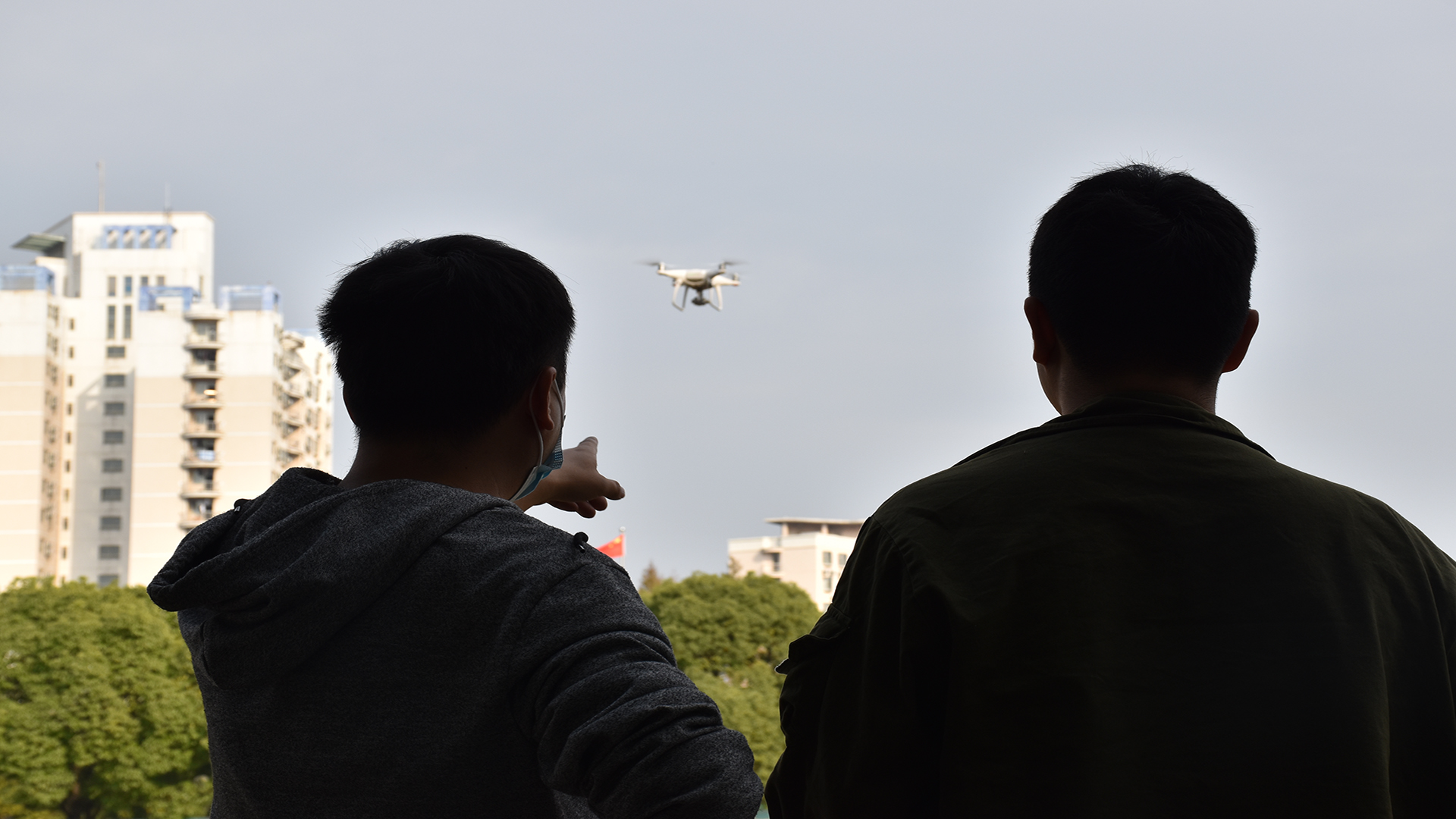 11月10日,艺建系王子烜老师带领环艺、动漫、新闻专业同学在停机坪开展了“逐梦蓝天,创造无限可能”活动,从知识科普、无人机飞行表演和试飞三个环节向同学展示,意在开拓学生的视野、丰富学生的校园生活和培养学生的创新意识和动手能力。