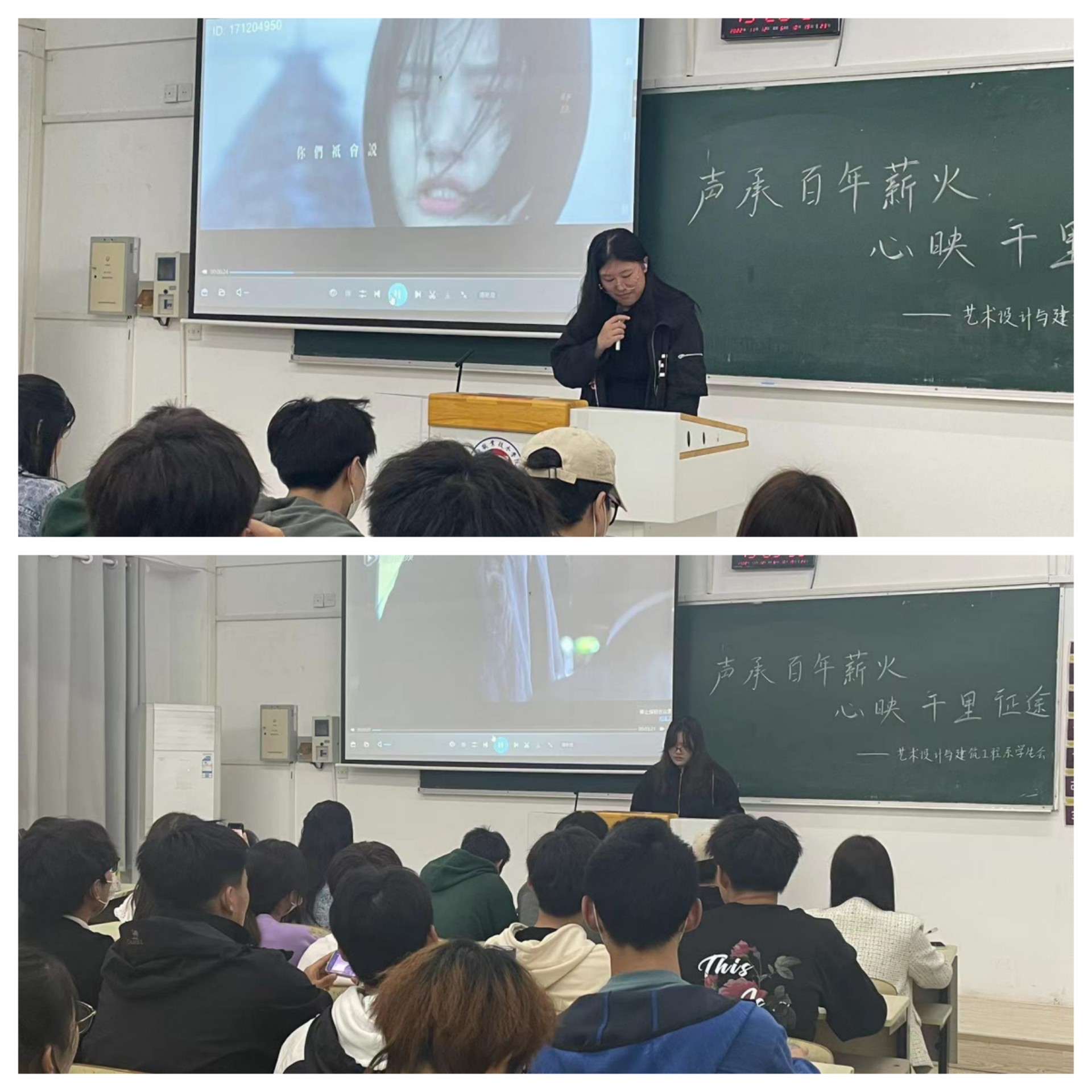为了丰富同学们的课余生活,提高团队合作能力,91自拍 艺建系学生会举办了“声承百年薪火,心映千里征途”为主题的红色经典配音大赛,比赛于2022年11月21日在2206教室举办。本次比赛特邀院新闻媒体中心主任吴宋俣同学做主评委,艺建系学生会秘书部部长周涵同学及其他各班学生代表现场投票打分。