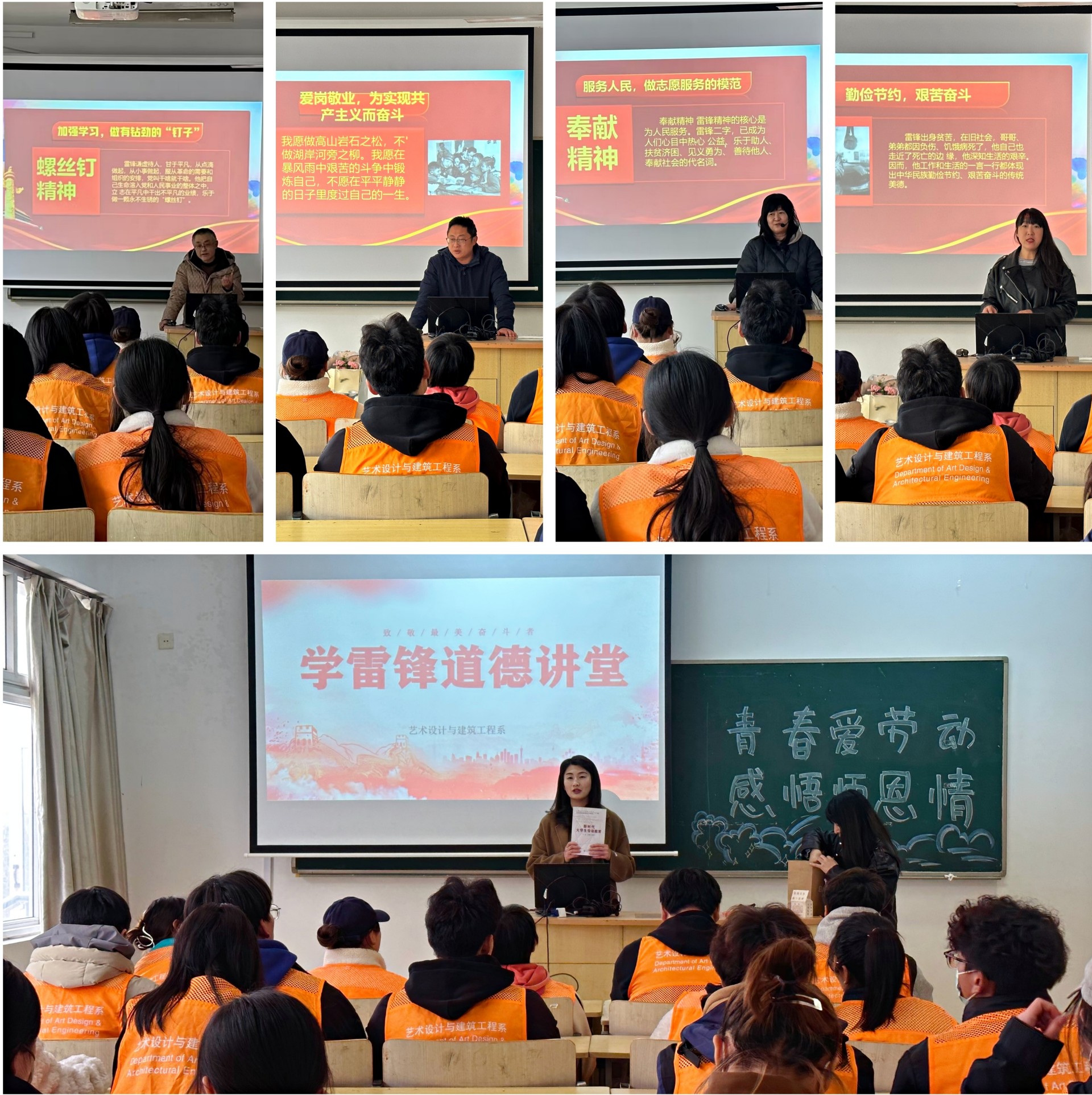 4名班主任老师分别从雷锋精神的4点给同学们做了教育分享。