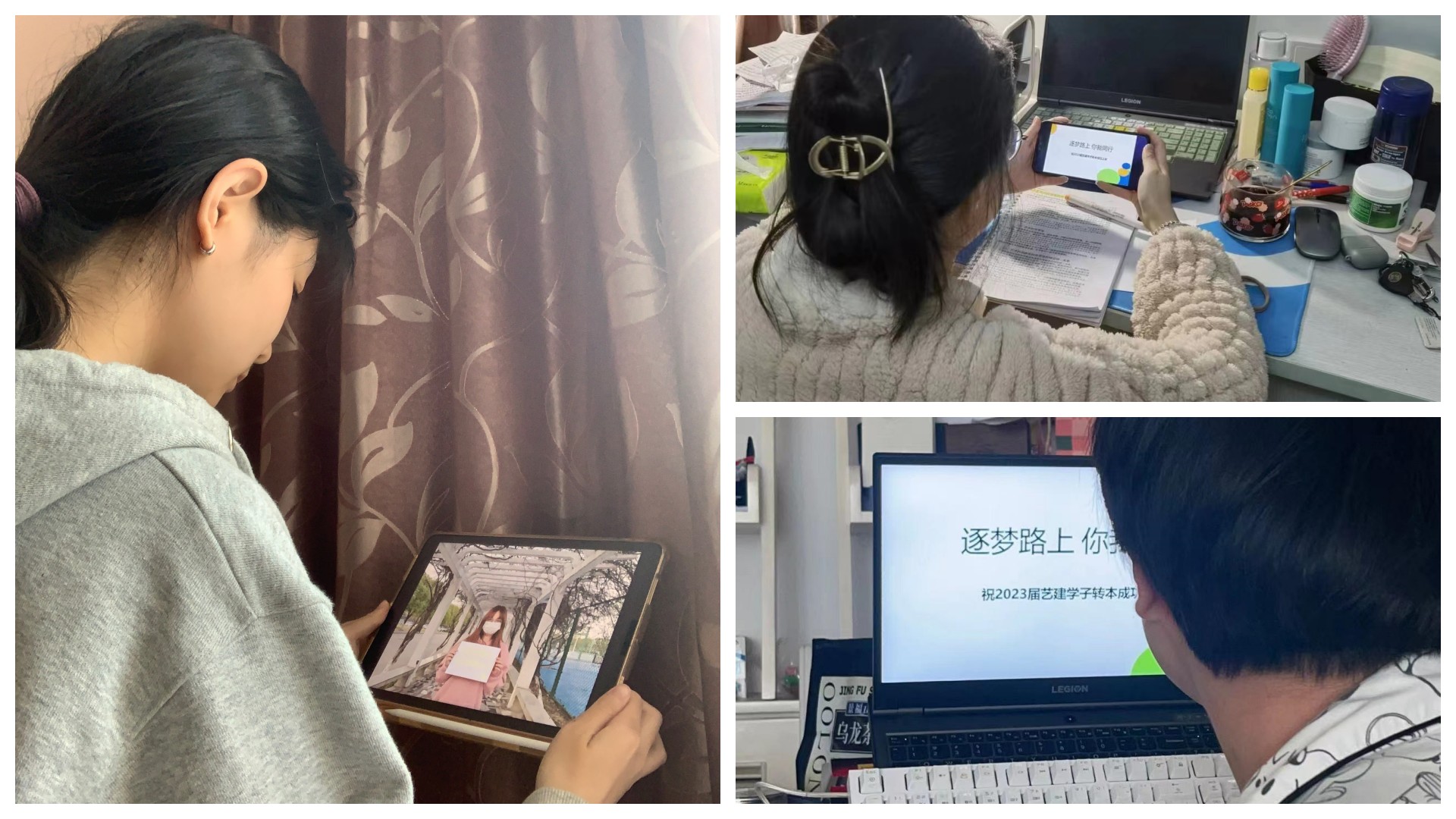 张老师也带来了艺建系的学弟学妹们为大家送上的考前祝福,预祝学长学姐们同学们前程似锦、金榜题名。