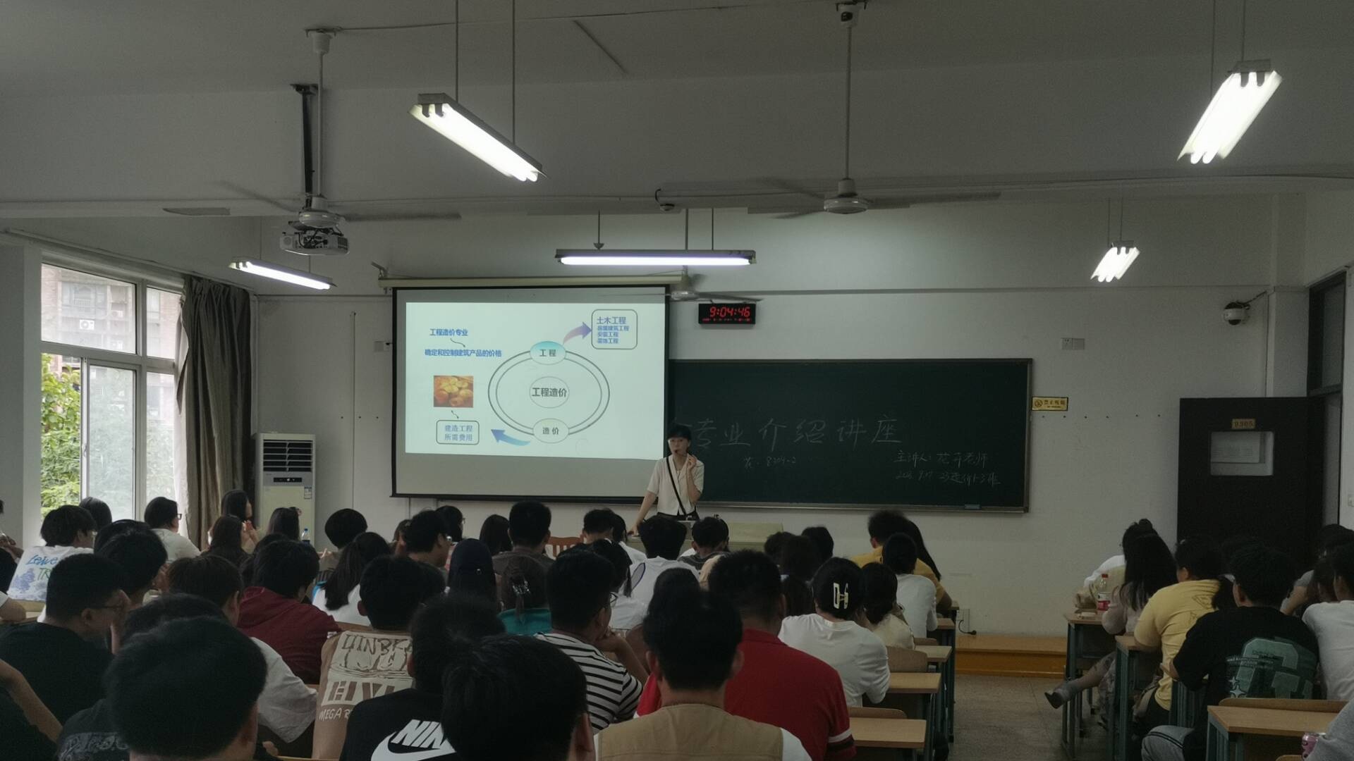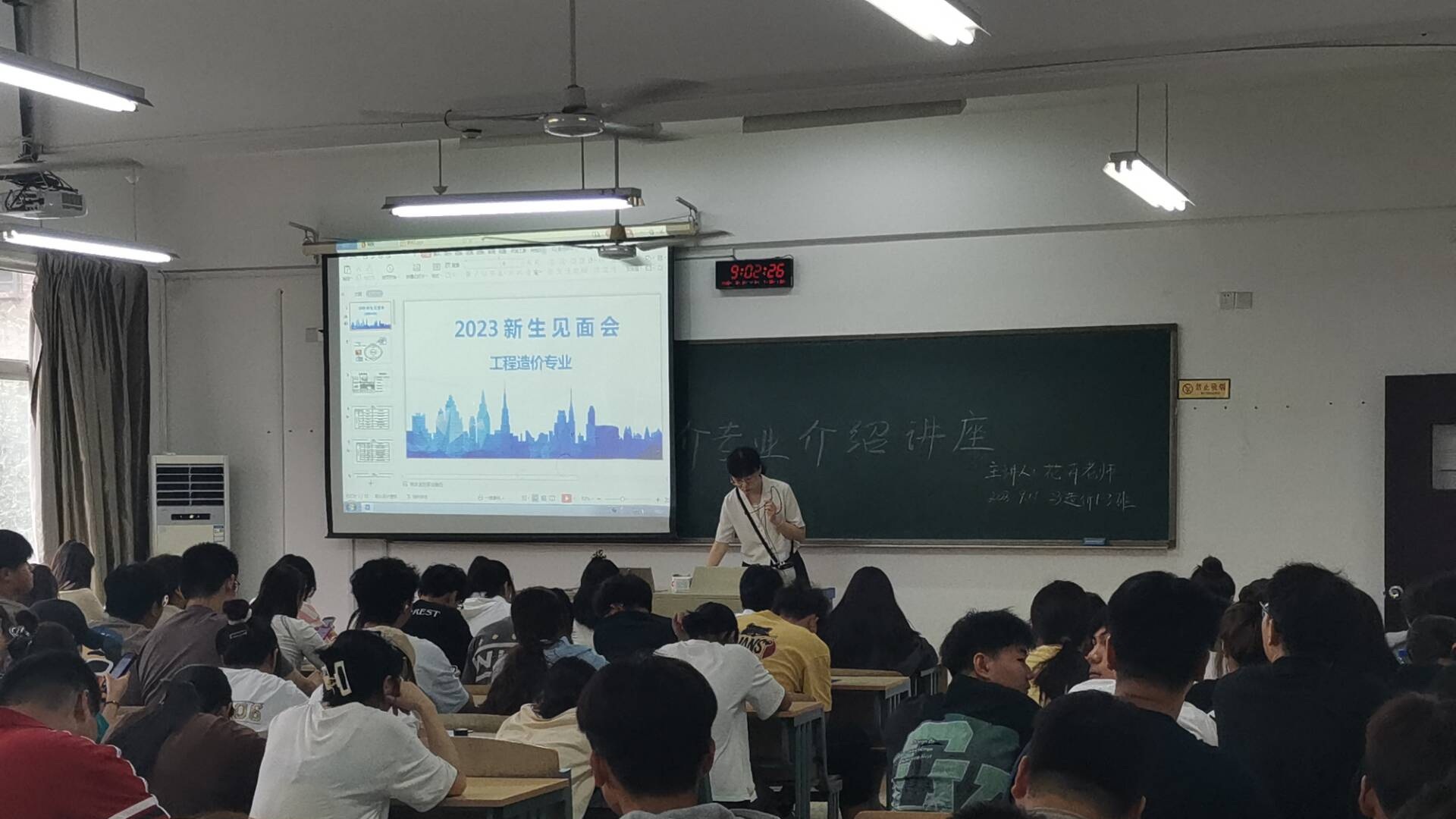 满怀憧憬,开启人生新篇章,艺术设计与建筑工程系工程造价专业2023新生于9月14日上午在9号教学楼9305教师迎来了大学期间的第一次专业见面会。工程造价专业负责人花卉老师就人才培养目标、课程体系、学历提升(专转本、专接本、出国留学)、岗位实习、就业方向、优秀校友等内容进行了专业介绍。