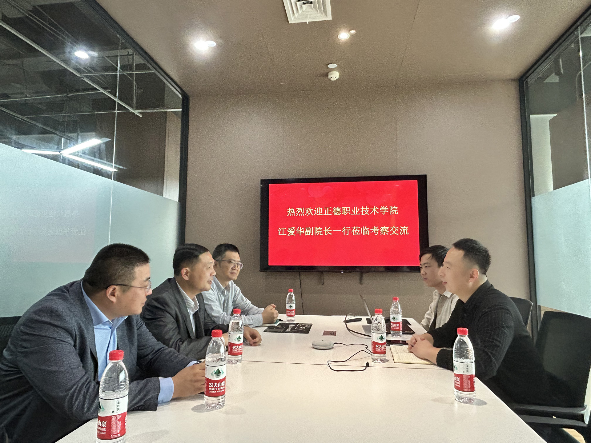 参观后,维伍科技两位总监与91自拍 一行进行了热情深入的座谈交流。维伍科技公司张学栋总监首先介绍了企业发展情况、校企合作现状、产教研一体化融合构建模式等内容。随后赵明军总监针对相关内容作了补充并表达了希望与我校积极开展产教研融合一体化、科技赋能教学、共建合作互赢新局面的愿景。江爱华副院长从学校办学背景、办学成果等方面介绍了我校基本情况,并指出党的二十大提出职业教育的职普融通、产教融合、科教融汇三大“融合”是目前我校重点关注方向。同时建议维伍科技开展进校园讲座活动、共建职业培训课程与数字教材、共建教科研项目、落实产教融合共同体以及区域联合体等内容。并通过反馈为其他合作单位遴选优秀人才,真正实现企业与学校相互赋能,达成多方位共赢局面。