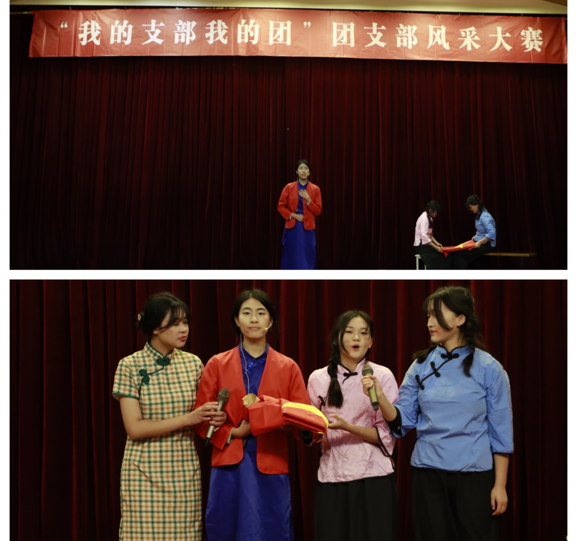 在此次团支部风采大赛中,我系各团支部结合团支部基本情况,与专业特色相结合,以情景剧的形式,将了解百年征程中党的光辉历史、初心使命,感悟家国情怀、民族大志,体认党的精神谱系、传承党的红色基因融入其中,与时代的发展同频共振。234702团支部《红岩魂》以生动的舞台表演展现了有情有义的青年对组织、信仰的忠诚、对坚守事业的永不放弃精神;224802团支部《红色家书》表演呈现了家书中寄托的家国忧思,传达了烈士们坚定的革命信念、大无畏的革命精神;224901团支部《百年风华》以幕布表演的形式将党百年历程中的足迹,将共产党人的信仰力量及生死考验中铸就的忠诚本色展现在舞台。