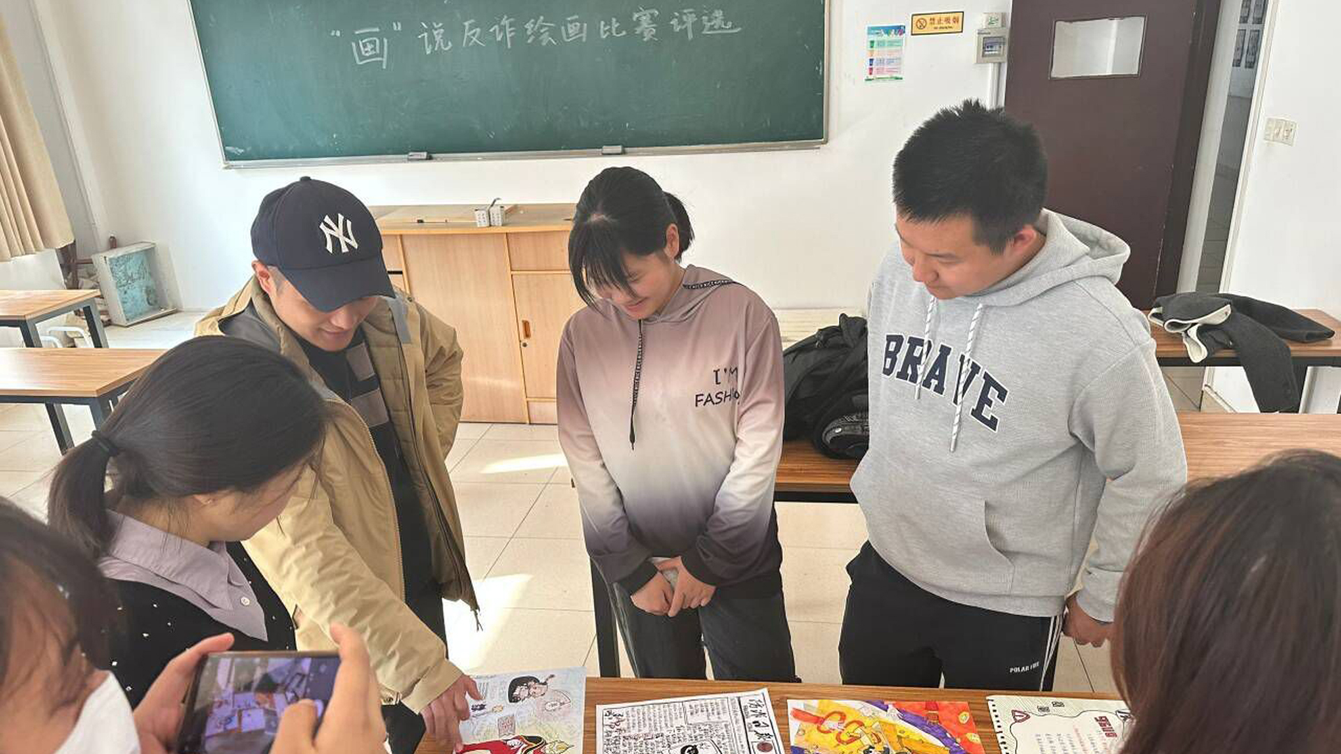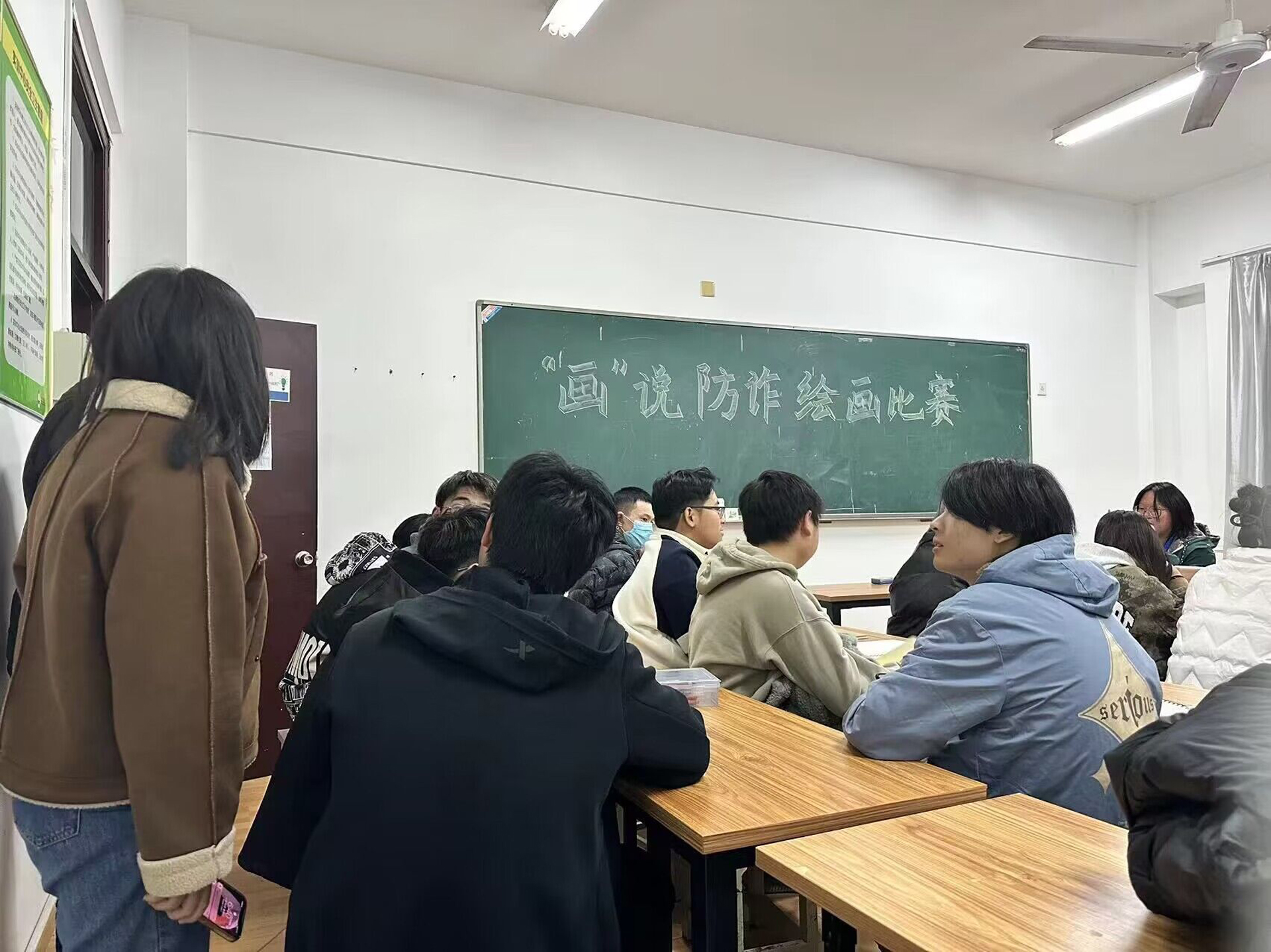 二是绘画比赛阶段,同学们利用晚自习的时间,充分发挥自己的想象力,将自己对防诈骗的认识与理解融入到自己的画笔当中,呈现出各式各样寓意深厚的作品。艺术设计与建筑工程系党支部书记杨春娟也莅临比赛现场,关心同学们的作画状态,鼓励同学们积极创作,牢记防诈骗理论知识,提高防诈骗意识。