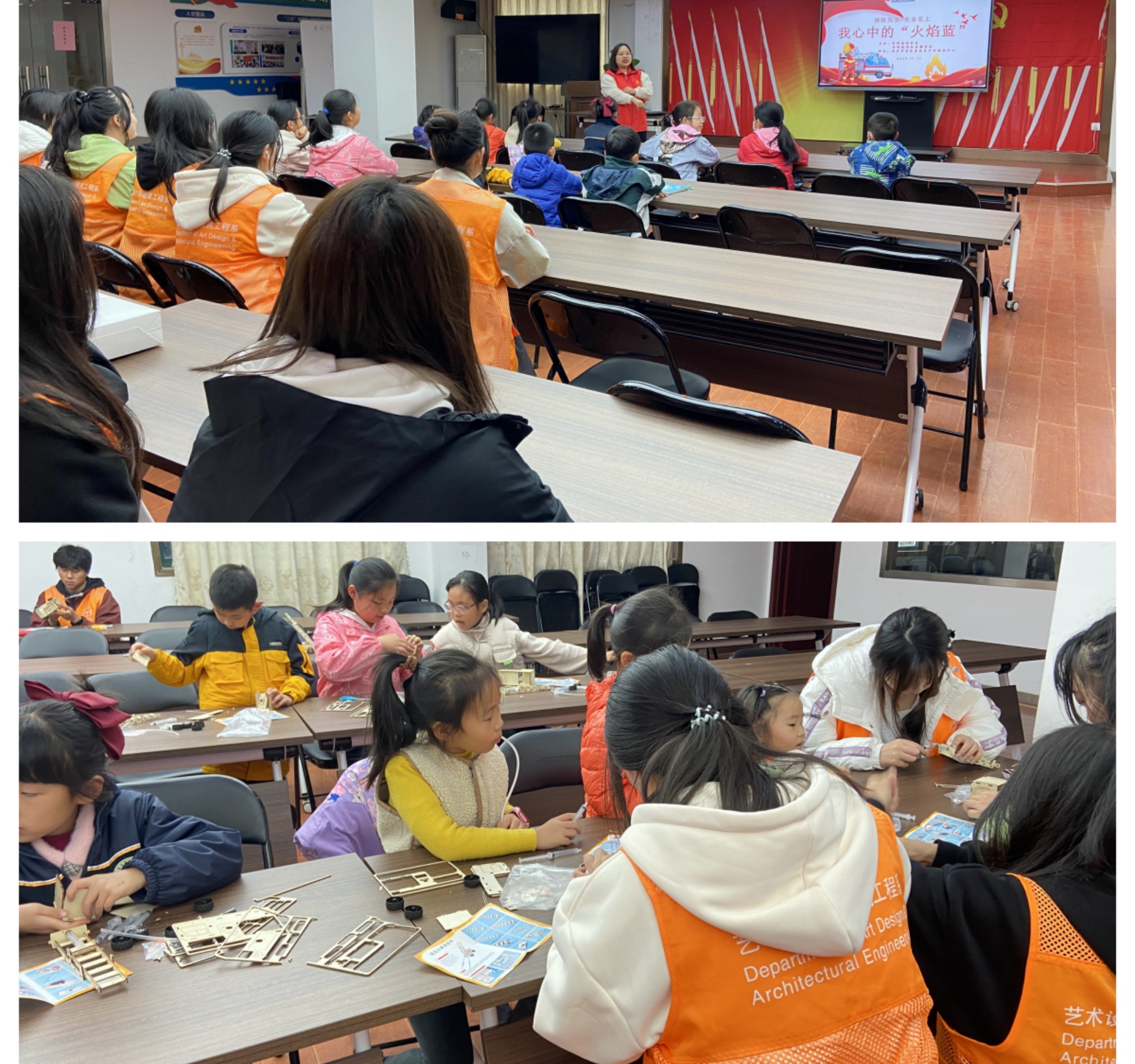 11月11日,艺术设计与建筑工程系学生志愿者们携手社区青少年们开展了“我心中的‘火焰蓝’”消防安全宣传主题活动,活动过程中,志愿者们通过视频学习、典型案例宣讲等形式,与社区青少年们全面系统的学习火灾的危害、发生的原因、防火措施、自救逃生技能及灭火器的正确使用方法等消防安全知识。