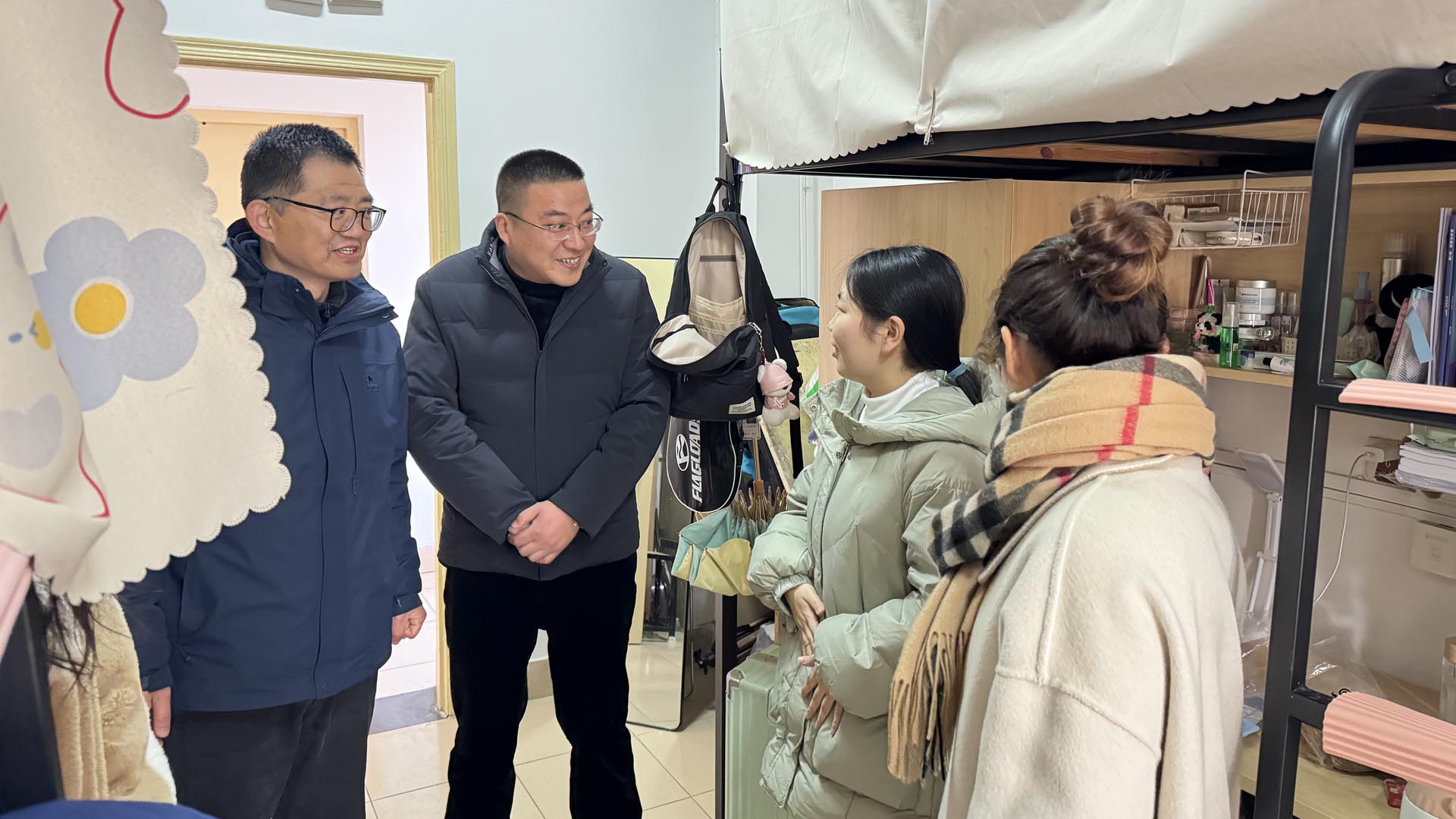 在走访过程中,周卫和陆松与同学们进行了亲切的交流,详细询问了同学们返程的路况,是否有受到大雪的影响。他们还认真了解了同学们在寒假期间的学习进展、生活状况,以及新学期的规划和心理状态。同时嘱咐同学们,无论是学习还是生活中,遇到困难或困惑时,应及时向学院老师、辅导员寻求帮助,鼓励同学们在新学期努力提升自己的专业能力和学术素养。