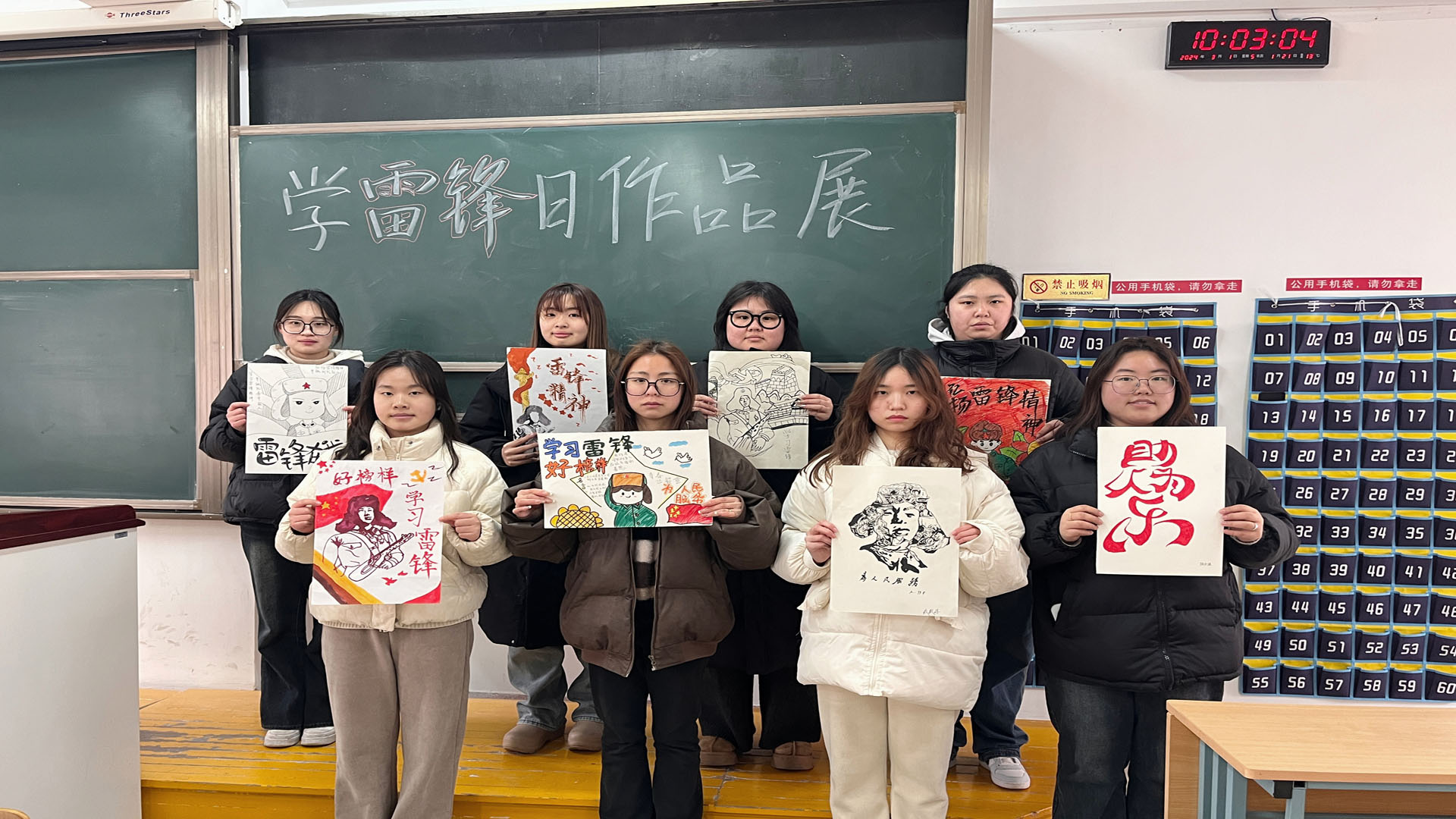 班会结束后,同学们围绕雷锋精神的主题,充分发挥自己的创意和艺术特长,投入到书画作品的创作中。他们或挥毫泼墨,或细致勾勒,这些作品各具特色,它们以不同的艺术手法展现了雷锋同志的光辉形象及其精神内涵。有的作品通过细腻的笔触,将雷锋同志的英勇形象刻画得栩栩如生,使人仿佛能亲眼目睹他无私奉献、助人为乐的动人场景。这些画作深入骨髓地揭示了雷锋精神的深刻内涵,使人感受到那种淳朴、善良与无私的力量。