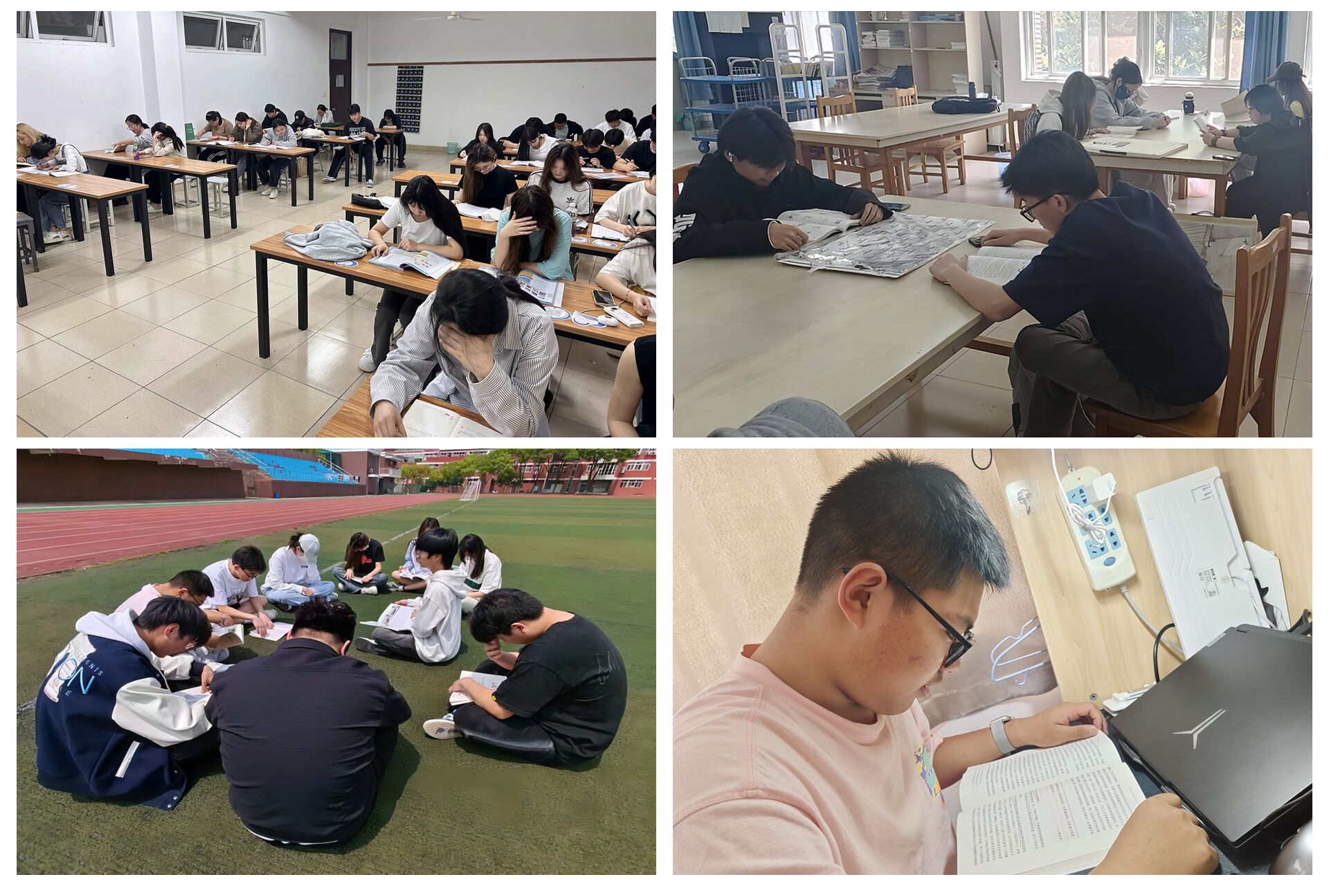 读书心有境,入境始为亲。为了促进同学们朗读水平的整体提高,同学们前往操场开展了朗读活动。同学们声音洪亮,字正腔圆,带着大家走进文章情感的最深处,通过朗读加深了同学们们对文章的理解,将读书的种子洒向校园里的每一个角落,不论是在教室,还是宿舍,亦或是图书馆内都能看到一群群学生读书学习的身影。