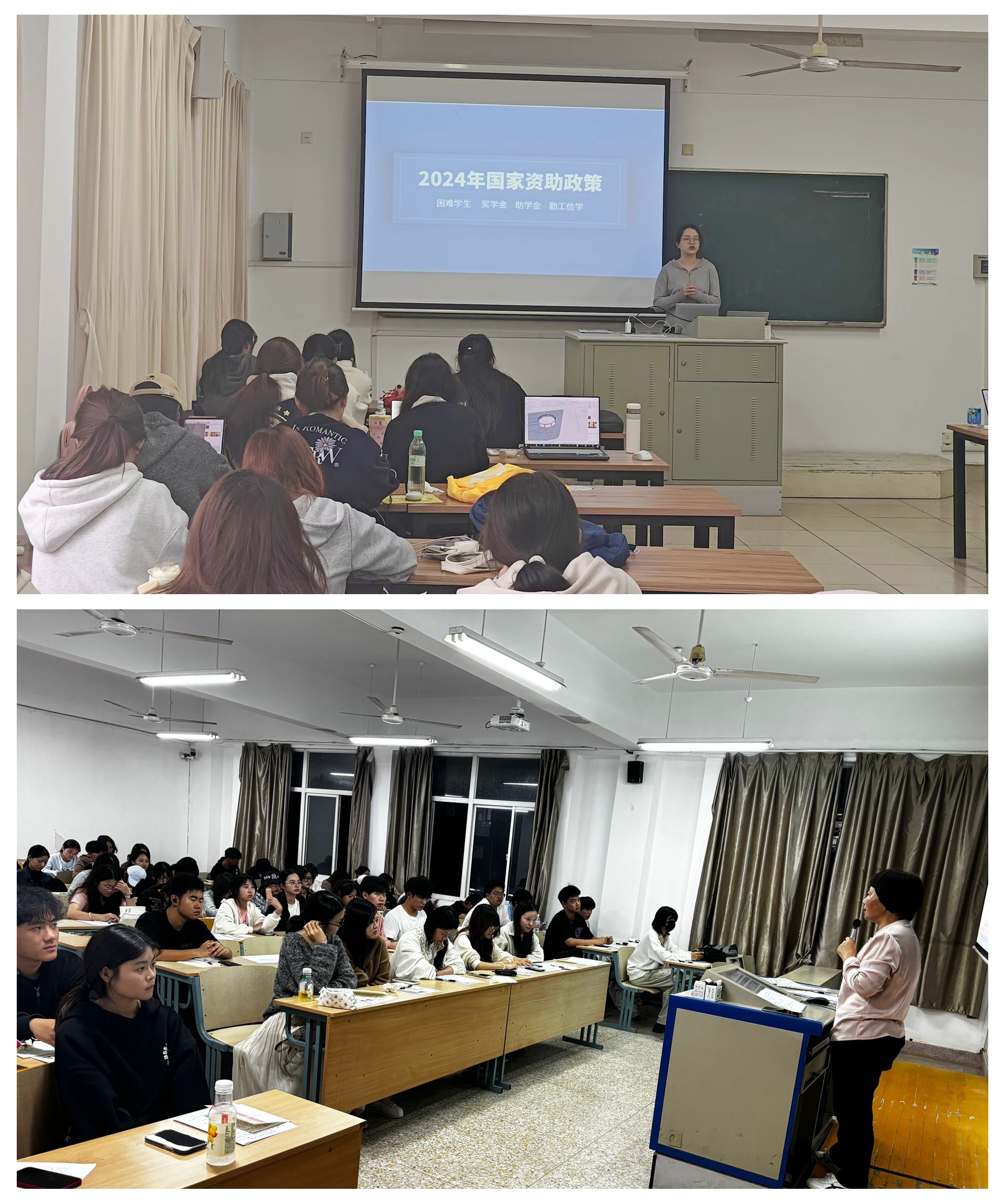 会上,辅导员们首先介绍了国家及学校层面的一系列资助政策,包括国家奖学金、国家励志奖学金、国家助学金、国家助学贷款、勤工俭学、学费减免以及各类社会资助项目等。通过PPT展示和生动案例详细阐述了每项资助政策的申请条件、申请流程、资助额度以及注意事项,确保同学们能够清晰掌握政策要点。