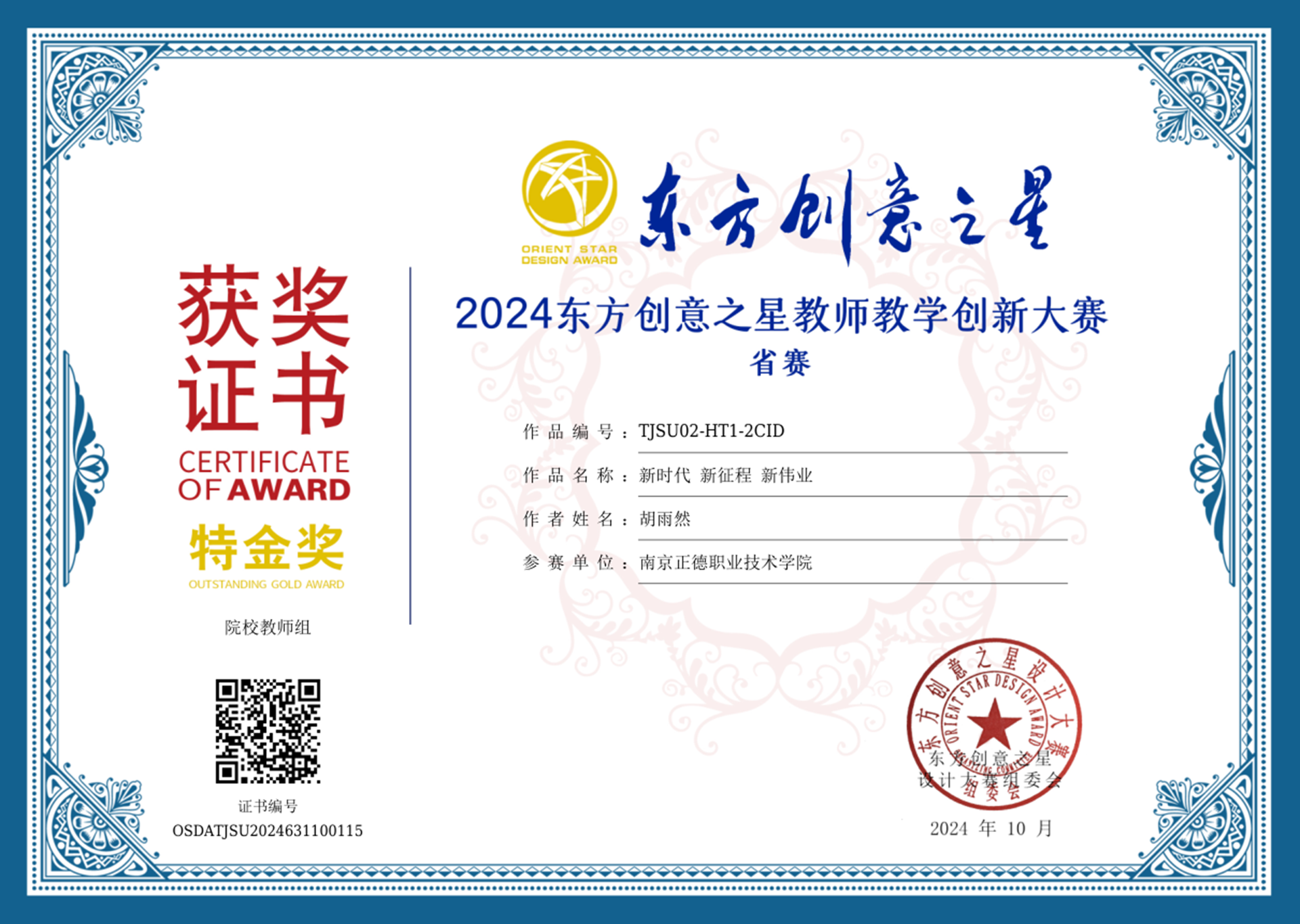 2024年10月25—28日,2024东方创意之星教师教学创新大赛(以下简称教师赛)国赛评审会在江苏大学隆重举行。来自工业和信息化部国际经济技术合作中心、江苏大学、中国美术学院、同济大学、南京工业大学、东南大学、华东师范大学、中国计量大学、山东大学、大连工业大学、上海工程技术大学、《上海视觉》学报等国内著名院校及设计行业的22位领导、知名教授及专家组成国赛评委会,参加了本次国赛终评工作。来自全国25个省区市的96家单位(涵盖天津美术学院和上海大学、东华大学、中南大学等14所“双一流”高校),共计126位代表(23位院长/副院长/教务处长,1位博士生导师、2位博士后、36位博士,45位教授/副教授等高层次参赛作者)参加了线下答辩。91自拍 艺术设计与建筑工程系的王陶老师,在现场授课答辩环节中,全面展现了其卓越的教学技能与创新性成果。经由评审专家团的严格评审,荣获东方创意之星教师教学创新大赛国赛金奖。