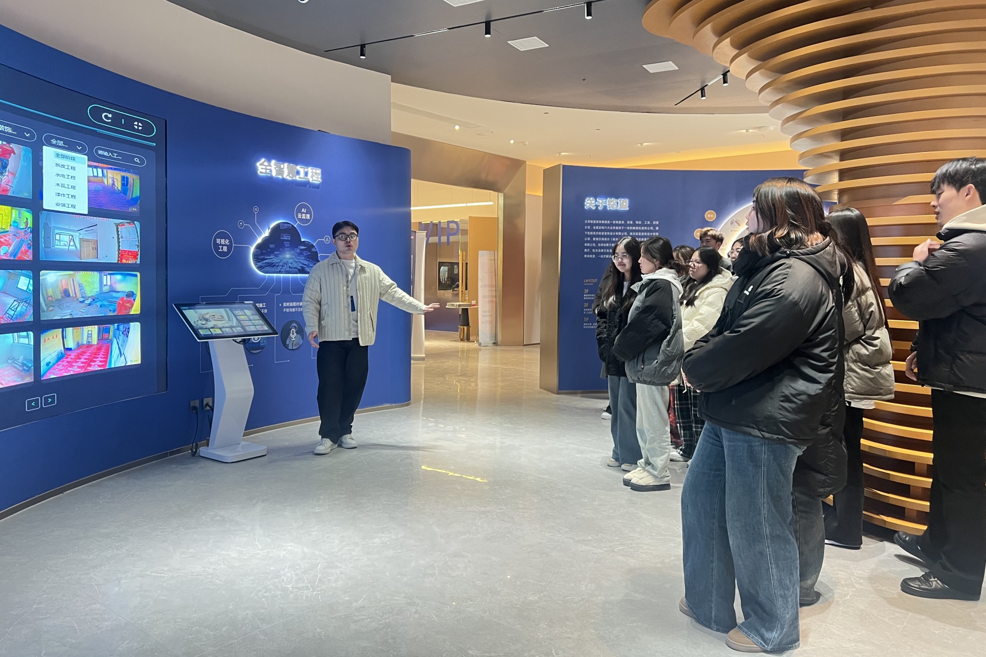 在参观过程中,饶主管与同学们进行了积极的互动,耐心解答了学生们提出的各种问题,进一步加深了他们对建筑室内设计领域的认识和理解。这种真实训、真研学的模式,让同学们仿佛置身于真实的职场环境中,对装饰装修设计行业有了更加直观和深入的感受。