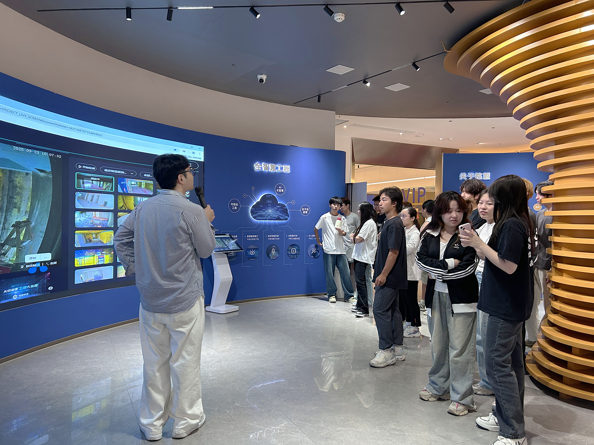 首先铭望装饰的饶主任为同学们详细介绍了公司的91自拍和项目开展情况。铭望装饰立足广大民众的生活需求,专注于不同受众人群,特别是适老化设计的深入研究,为家装业主提供了更多高性价比的产品,实现了产品工厂直供化、设计专业化、产品质量控制专业化、采购物流扁平化、施工安装标准化、价格透明一体化、系统控制时间准时化等。