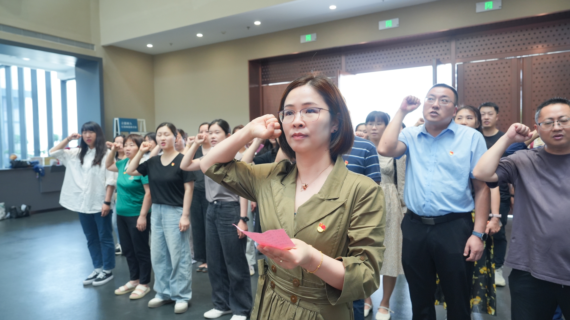 活动最后一个环节,全体教师齐聚在宣誓大厅,举行了庄严的集体宣誓仪式。在激昂的宣誓声中,教师们身姿挺拔,右手握拳高举过肩,字字铿锵地重温了人民教师的神圣职责。这誓言,不仅是对教育初心的再次坚守,更是向教育事业发展许下的郑重承诺,表达了为培育时代新人贡献自己全部力量的坚定信念。