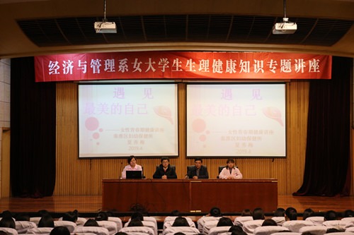 为了进一步加强女生的青春成长教育,增强女生自尊自爱的意识,4月1日,经济与管理系举办以“遇见最美的自己”为主题的女大学生生理健康知识专题讲座,该系所有女生参加。此次活动由秦淮区妇幼保健所所长赵颖和主任夏秀梅担任主讲嘉宾。副院长薛忠云出席会议。会议由该系副主任吕品主持。