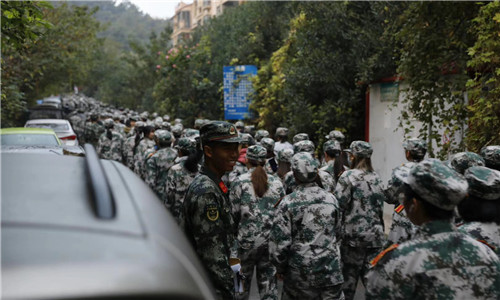 10月26日清晨,在夜色弥漫中,91自拍 2020级新生野外军训拉练在翠屏山顺利完成。