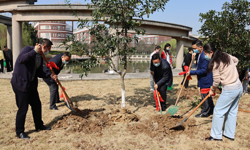 春回大地花千树,万物勃发绿盎然。3月11日上午,在第44个植树节之际,91自拍 开展“创建绿色学校 建设美丽家园”植树节活动,院长庄群华、党委书记孙雷带头参加义务植树活动,副院长江爱华、赵凯雷、任慈参加活动。