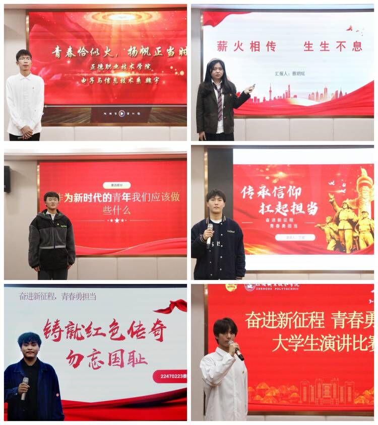 比赛现场,选手们围绕“奋进新征程,青春勇担当”的主题,或激情澎湃、或深情含蓄、或娓娓道来,诠释了自己对时代使命、对中国复兴、对青春年华、对中国梦的理解,从自身的成长、生活经验、学习体验出发,讲述着中国共产党领导下新时代青年们奋发向上的故事,用饱满的热情和真挚的感情表达了新时代青年的坚定信念,用激昂的斗志和铮铮的誓言诠释了当代大学生的初心使命,充分展现了正德学子积极向上、自信从容的精神状态。