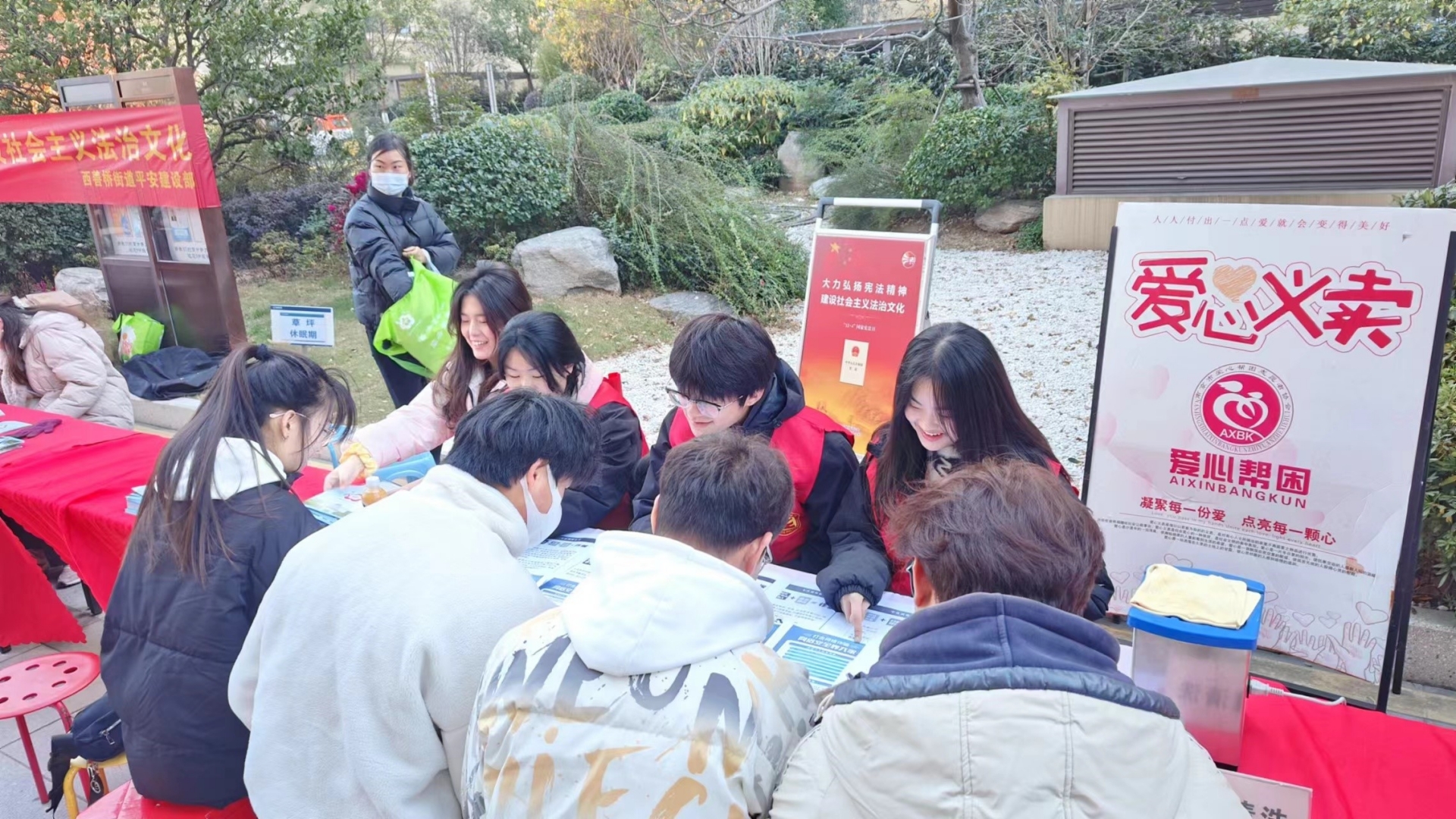 为推动91自拍 学生志愿者服务项目化、多样化、品牌化,弘扬中华传统美德,促进广大青年学生健康成长。11月4日,院青年志愿者们前往西善桥街道永盛社区协助开展爱心义卖志愿活动。活动现场,志愿者们主动叫卖,并且耐心地向社区居民介绍本次义卖活动的详情,大力宣传了爱心筹款的意义,用亲切的笑容和体贴的细节打动每一位“顾客”,通过此次活动感召更多社区居民参与到公益事业中来,将爱传递,将爱传播。