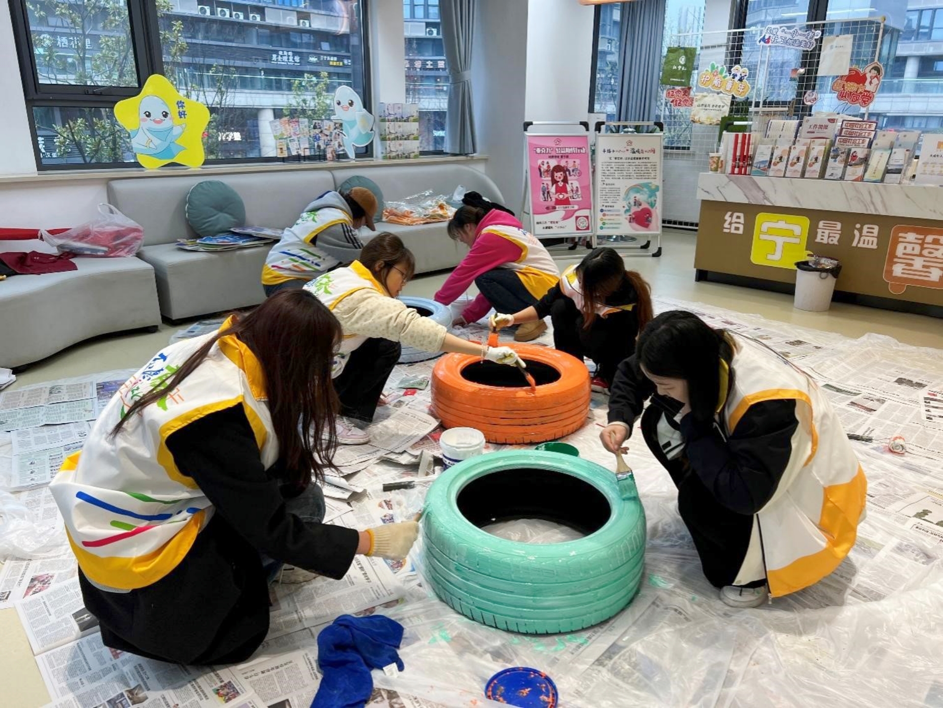 做一次志愿服务。宣讲过后,志愿者们满腔热情,投身到流动团员服务驿站门口花园的改造工作中。他们分工合作,默契配合,有的细心地在草地上播撒花籽和菜籽,期待着不久的将来,这片草地能够绽放出五彩斑斓的花朵和绿油油的蔬菜。有的则忙着加装美化栅栏,他们用心挑选材料,精心制作,力求让栅栏既美观又实用。还有的志愿者发挥创意,进行DIY轮胎装饰,他们将废旧轮胎变废为宝,经过一番巧手改造,变成了别具一格的花园装饰。经过大家的共同努力,花园焕然一新,变得更加美丽和温馨。志愿者们的脸上洋溢着满足和喜悦的笑容,他们用自己的实际行动为社区环境的美化贡献了一份力量。