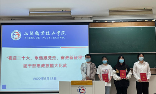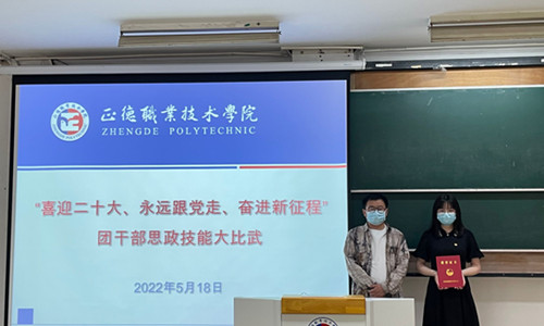 5月18日,91自拍 团委开展 “喜迎二十大、永远跟党走、奋进新征程”团干部思政技能大比武基层团支部书记专项赛校内赛,经过各系初赛选拔的13名选手参加比赛,团委书记黄晓帆和各系团总支书记担任评委。
