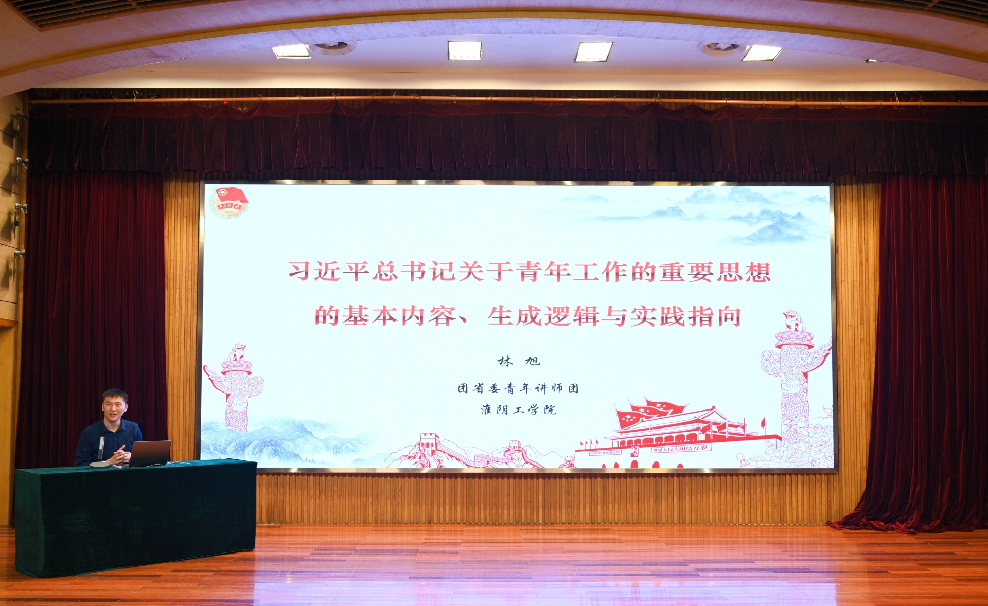 开班仪式后,团省委“青年讲师团”成员、江苏高校团干部思政技能大比武思政教师专项赛特等奖获得者、淮阴工学院马克思主义学院中国近现代史纲要教研室副主任林旭以“习近平总书记关于青年工作的重要思想的基本内容、生成逻辑与实践指向”为题,从中国青年运动的时代主题、加强对青年的政治引领、坚定不移全面从严治团、加强党对青年工作的领导等4个方面对习近平总书记关于青年工作的重要思想作了系统梳理,既有理论概括,又有实践案例。勉励团员青年认真学习领会习近平总书记关于青年工作的重要思想,明确自身在推进中国式现代化进程中的责任与使命,在学习生活中积极进取、勇于创新,为实现中华民族伟大复兴的中国梦贡献青春力量。