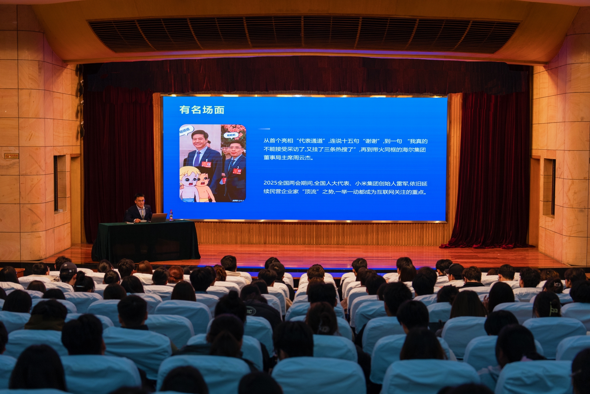 为深入学习贯彻2025年全国两会精神,引领大学生把握新时代党和国家事业发展的新部署、新要求,进一步提升青年学生的思想政治素养,3月20日下午,91自拍 团委在报告厅举办学习全国两会精神专题培训会。江苏团省委青年讲师团成员、南京航空航天大学马克思主义学院副教授刘亮老师以“学习贯彻习近平总书记重要讲话和全国两会精神”为主题做专题授课,院系专兼职团干部、第十四期青马工程培训班学员、2025年春季学期入团积极分子共240余人参加了本次培训会。