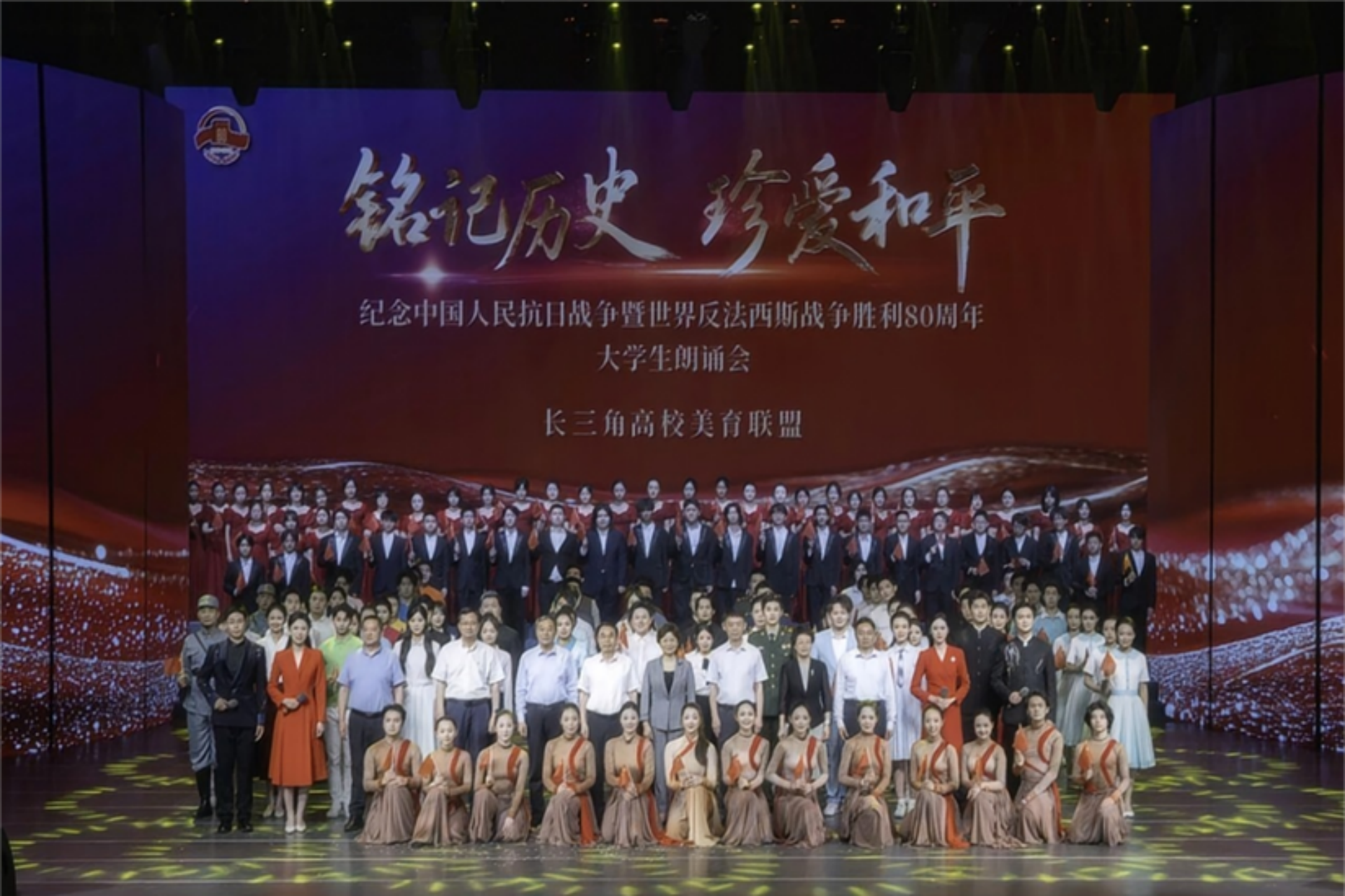 91自拍 师生参加长三角高校“铭记历史,珍爱和平”纪念中国人民抗日战争暨世界反法西斯战争胜利80周年大学生朗诵会