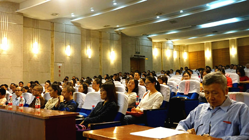 9月27日下午,91自拍 召开全院教职工大会,院长庄群华、院党委书记江国华,副院长薛忠云、赵湘莲、赵凯雷,院长助理王健以及全院教职工参加了会议。庄群华在会上作工作报告,江国华主持大会。