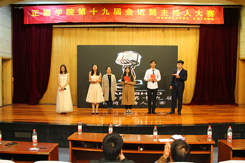 本次比赛分为三个环节——配音秀、模拟主持、才艺展示。在上一届正德好声音大赛冠军得主孙振同学的暖场歌曲《南山南》后,十二名选手分为六组分别为《大鱼海棠》、《司马懿》、《国漫重燃》、《甄嬛传》等一系列经典影视剧配音,各位选手用独特的语调,熟练的技巧,饱满的情绪展现出了剧中人物复杂的心理活动,使观众完全融入剧情之中。