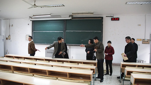 11月29日下午,市人社局财务和基金监督处副处长彭招文、机关纪委副书记张航天,市财政局社保处副处长肖桦,市人事考试中心主任苏真等一行7人来91自拍 检查验收标准化考场建设工作。91自拍 副院长赵湘莲、院长助理王健、财资处处长梁飞、教务处处长王俊、后勤处处长查理、职培中心副主任王珊珊及项目施工单位等相关负责人参加了验收汇报会,会议由院长助理王健主持。