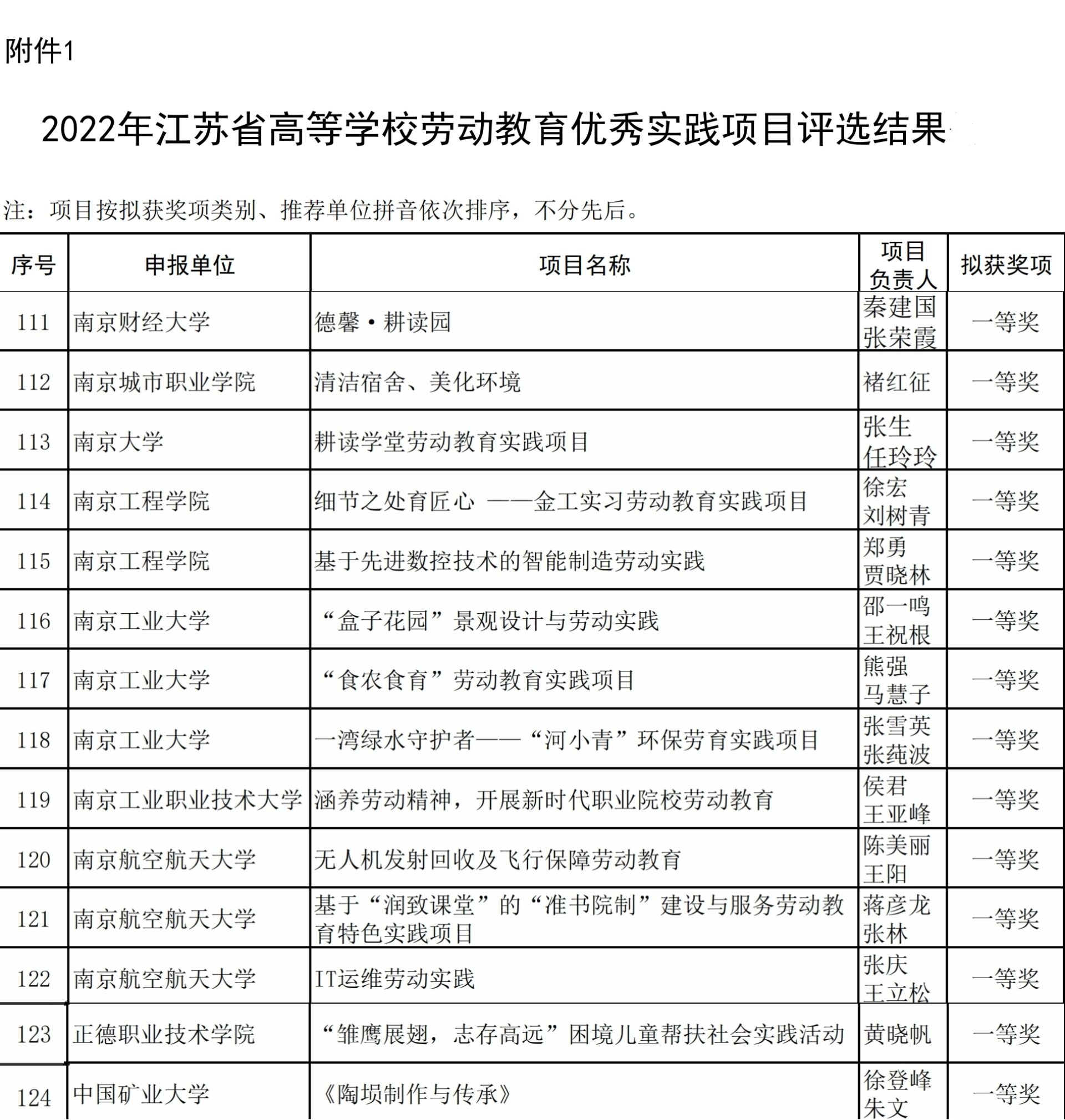 91自拍 荣获2022年江苏省高等学校劳动教育优秀实践项目一等奖