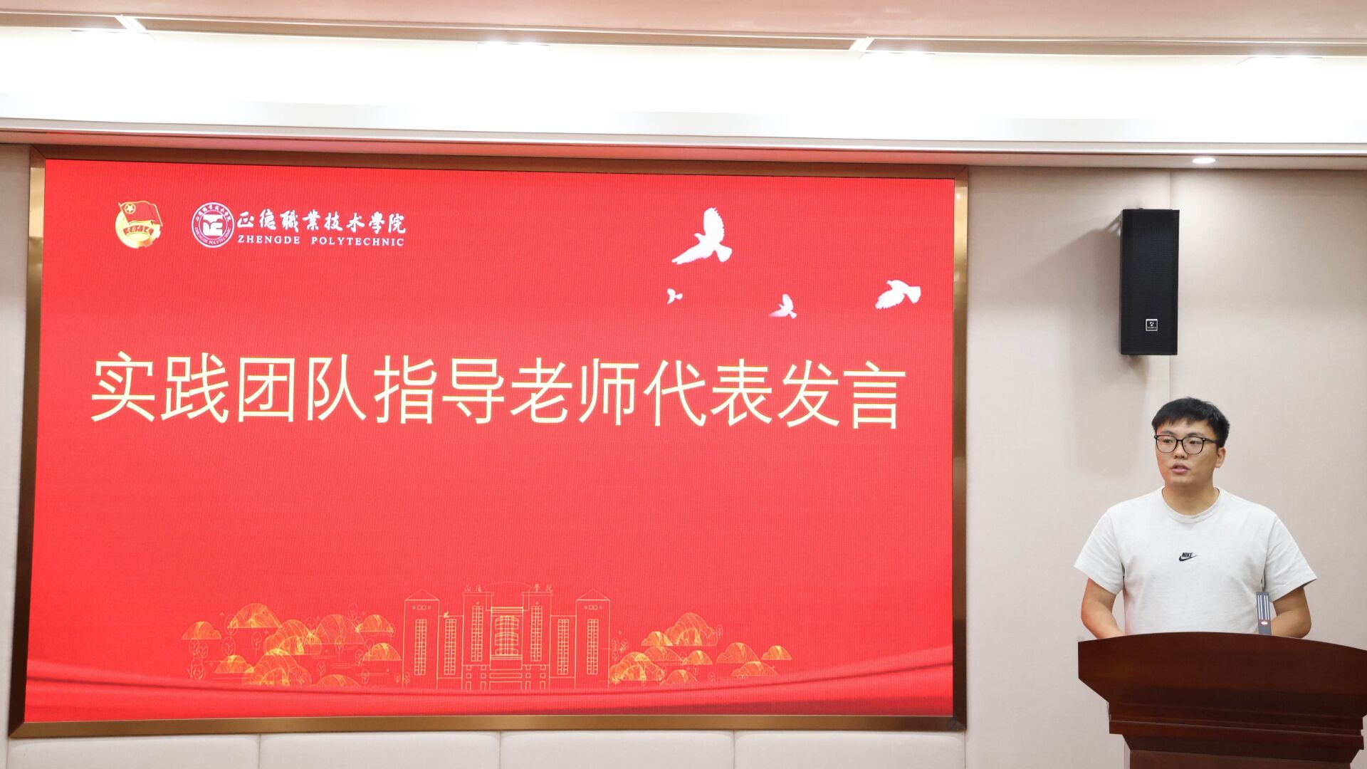 暑期社会实践团队负责人电子与信息技术系魏宇同学代表各实践团队表示要在社会实践中严格要求自己,遵守规章制度,在挥洒青春汗水的过程中展现正德学子的青春风采。