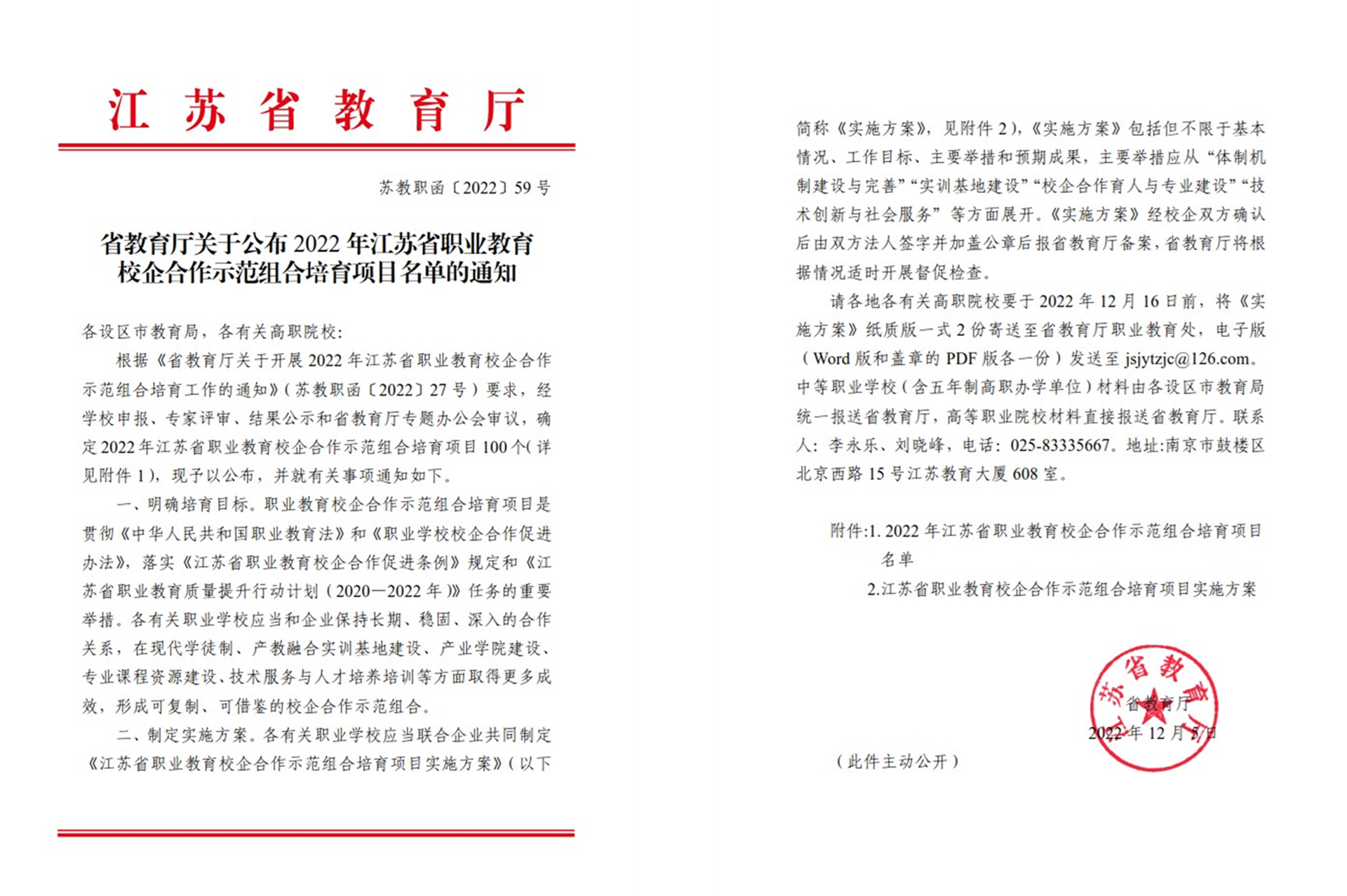 此次省教育厅组织开展的江苏省职业教育校企合作示范组合培育工作,是根据《江苏省职业教育质量提升行动计划(2020—2022年)》要求,首次推出了省级示范组合培育项目,校企合作示范组合是指职业院校和企业双方建立长期、稳固、深入的合作关系,在现代学徒制、产教融合实训基地建设、产业学院建设、专业课程资源建设、技术服务与人才培训等方面取得突出成效,具有示范和引领作用的学校和企业组合。